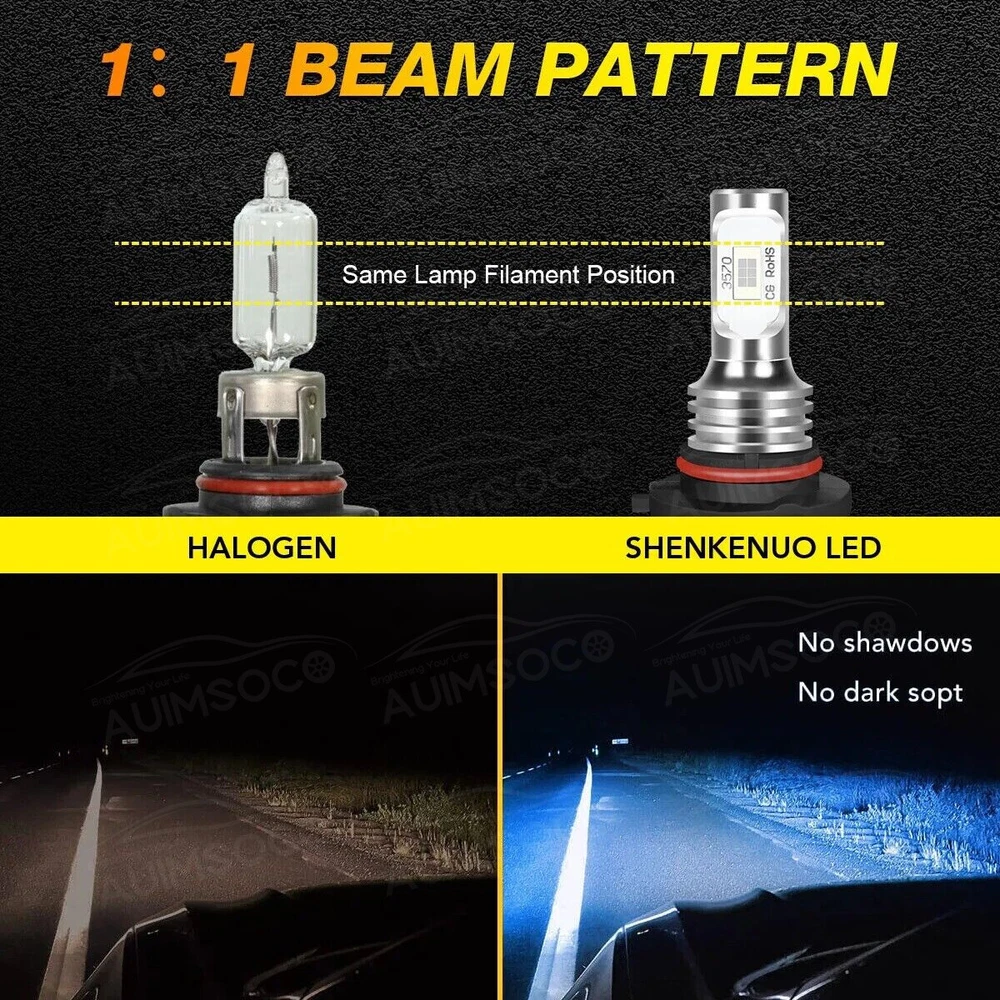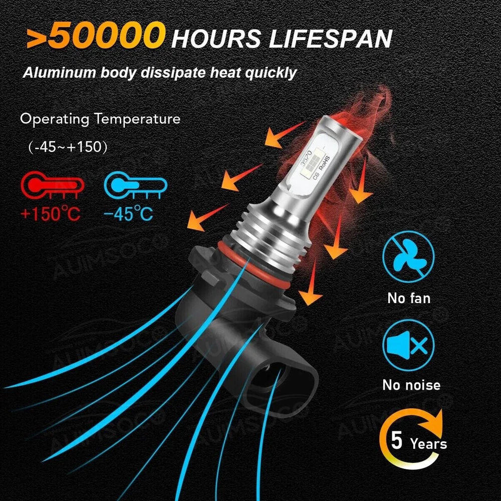 Product Advantages: 9005 (High Beam) + 9006 (Low Beam) High brightness High temperature resistant High purity of luminescence Good stable performance Built-in Driver Ballast Instant on fast cooling Energy saving environmental Long lifespan(>50000hr) Interchange Part Number: Use for high Beam, Low Beam, DRL or Fog Lights… LED Type: 6Pcs Led Chips Each Bulb Other Part Number: 6000K (Xenon HID Pure White) Head Light Lamp Bulbs Beam Angle: 360 Degrees Placement on Vehicle: Left, Right, Front Color: 6000K (Pure White Color) Condition: 100%Brand New/ Never Used Need additional Parts or Modification? 100% Integrated Design, Plug and Play. (Few vehicles may require load resistors to stop flickering or fix error message) Package include: 4x LED Headlight Bulbs 9005 (High Beam) + 9006 (Low Beam) Features: 1.Each Bulb have 2 sides of Super Bright LED Chips 2.Complete Kit: No Other Ballast/Driver Required Just Plug and Play - Newest Technology 3.Beam Angel: 360 Degrees 4.Color Temperature: 6000K Pure White 5.Smart Efficient Cooling System, Fast Heat Dissipation 6.High quality Aluminum heat dissipation ensures the secure temperature range 7.Low Power Consumption than Halogen bulb or Hid Kit, Energy Saving 8.Low Voltage Protection, High Precision Constant Current driver Chip 9.Shakeproof and Long lasting up to 50,000 Hours. 10.Easy installation, Plug and Play, NO modification required 11.Operating Temperature: -40°C ~ +80°C Automotive LED headlamps advantages: 1. LED lights than traditional halogen energy, more power. 2. Xenon lamp brightness and proximity , but the LED lights light up without delay, to enhance road safety. Instant start no strong currents impact , effectively protecting the car comes with a battery , improving battery life of more than 30%. 3. Fast cooling , the appearance of the most advanced design , thermal structure ingenious and reasonable. Less warranty, power driver with wide voltage constant current mode , the car can respond to a variety of voltage instability , the effective protection of normal use Led efficient and simple structure . Fewer Components damaged, repair the probability is very low , compared with HID ballast repair lower than 80% . 4. Heating temperature is low , protect the car . Xenon working temperature up to 800 ° -1000 ° , the main reason for the car ignition . 5. LED car headlights simple structure, fewer parts than xenon lamps, significantly lower than the xenon lamp failure rates ! 6. Automotive LED headlamps color temperature balancing. The Xenon bulbs in the same color to clear , about 6000K-6500K. Install Caution 1. As a safety precaution, make sure that the car has had time to cool down properly before starting the installation process. 2. Put the vehicle into park or make sure it is securely in gear. 3. Make sure to have the ignition turned off and the keys removed. 4. Be careful to avoid burns, especially when turning on or off the vehicles lighting. 5. Be careful to avoid crushing or cutting the bulbs. Also make sure to not touch the bulbs with your fingers, as this will cause blotting. 6. Fully examine the connection of the contact points, ports and the wires as faulty connections can cause lighting problems. 7. Make certain that the end of the bulb does not come in contact with the interior light shield of the headlight when adjusting the bulb. Brand New High Quality with Reasonable Price Fast Ship from KY or CA within 1 business day Tracking# Is Available With Free Shipping 60 days money-back guarantee & free return