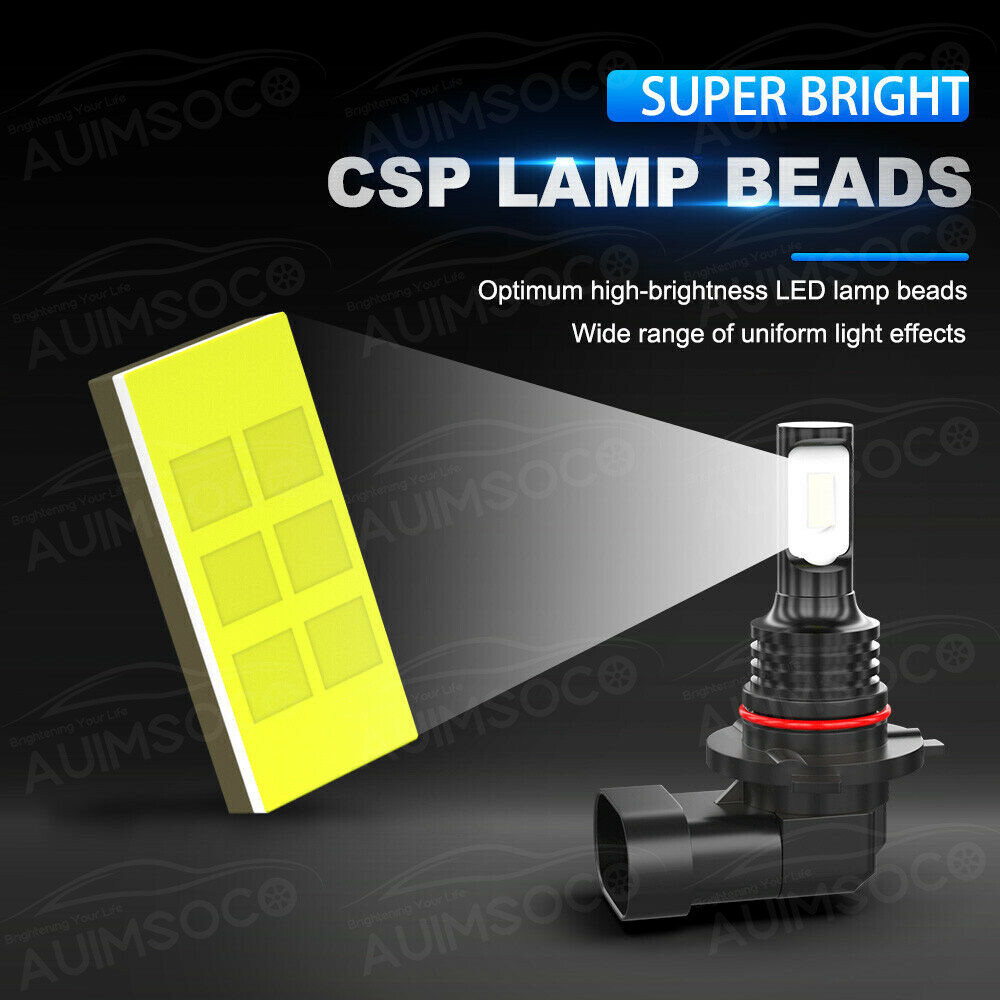 Welcome to AUIMSOCO Authorized Store on eBay We sell all kinds of LED bulbs for high beams, low beams, fog lights, turn signals and so on . This kit comes with high beam and low beam bulbs only, fog lights are not included Features: Power: 40W/set Luminous Flux: 4000lm/set (2000lm/bulb) Operating Voltage: DC 9-32V(fit 12V,24V vehicles) Color Temperature: Pure White 6500K IP67 rated water and dust seal,360 degree beam angle Material: Aviation 6063 aluminum profile Operating Temperature: -40-80 degree Celsius Over 30000hrs lifetime Usage: headlight Size: Mini size, it's suitable for more than 99% car models Beam: Using 3570 COB Led Chips and Special design,provide better light type,shape in a line and spotlight High Lumens: Using High Quality 3570 Led chip ( COB chips), High luminous efficiency. 20W @ 2000LM Each Bulb, Total 20W @ 4000LM Per Pair, 5 times brighter than halogen lights CSP chips, high quality and long life-time; Solid rivet fixing (Many other car headlight chips are fixed by screws; they are easily to fall off) Material: Metal material, more luxury, and longer service life Easy Installation: All-in-one aluminum material and design makes it easy to install. Plug-and-Play direct replacement in 20 mins. No need extra operation and no need to unlock button. For some cars, had to make little adjustment of the adapter to get proper light beam Waterproof: Well sealed, high waterproof rating, IP 67 Package Included: 2PC LED Headlight High Beam (9005/HB3) 2PC LED Headlight Low Beam (9006/HB4)