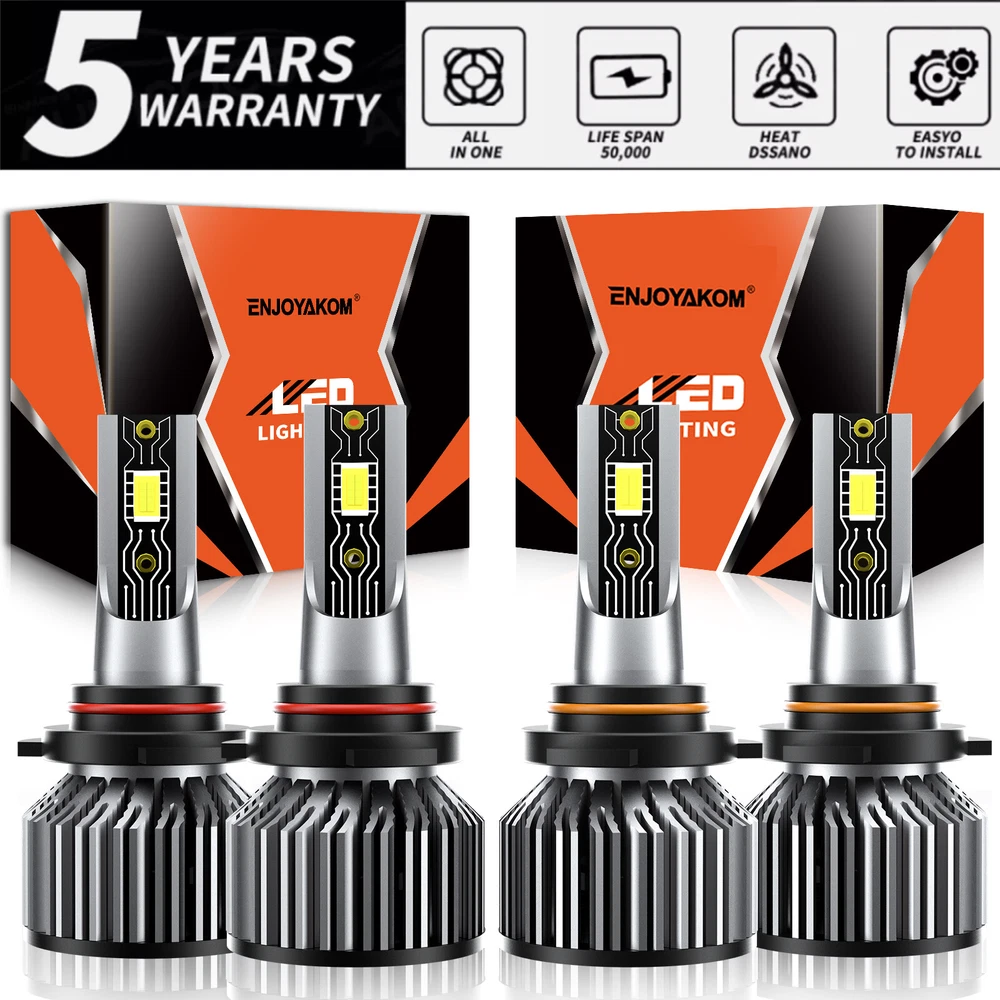 OE/OEM Part Number: 6500K LED Headlights To Fit: Headlight Fit 1: Car, Motorcycle, Motorbike, van, truck, pickup, SUV, vehicles Ballast Included: Yes Lighting Type: Specialty Head Light Bulb Universal Fitment: Yes gtin13: Does not apply Fitment Type: Direct Replacement Bulb Fitment Code: 9005/HB3 + 9006/HB4 Country/Region of Manufacture: United States MPN: ENJOYAKOM-Headlamp Bulb Placement on Vehicle: Front, Left, Right Vintage Part: Yes Suitable For: High Beam, Headlight, Low Beam Size: the same as the car original light UPC: 975059883730 Sealed Housing: IP68, Shockproof, Dustproof & Waterproof Superseded Part Number: Replacement Halogen Xenon Led Light Bulbs Application 1: For Headlight High Low Beam/led bulbs car headlights Material: Aviation 6063 aluminum profile More LED Kit We Have 1: 9005 9006 HB3 HB4 H11/H8/H9/H16 9012/HIR2 H1 H7 Color Temperature: 6500K Manufacturer Part Number: 9005+9006 Voltage: 9V-36V Number of Bulbs: 4 Manufacturer Warranty: 5 Year More LED Kit We Have 2: H4/9003/HB2 9004/HB1 9007/HB5 9008/H13 D1/D1S D2/D2S D3S D4S Model: LED Headlight Conversion Kit Lumens: 26000lm EAN: Does not apply More LED Kit We Have 3: 9005/9145/H10/9140 5202/2504 880/892/893/899 881/898/889/894 H3 Brand: ENJOYAKOM Application 2: led headlights for car &led bulb light bulbs Feature 2: light bulbs & leds/Light Bulbs Combo Kit Performance Part: Yes Bulb Life Hours: Up to 50000 Hours Type: Headlight Kit Chips Type: CSP LED Chips, Super Bright Wattage: 150W Lighting Technology: LED Fit 2: Easy Installation, Heat Resistant, Higher brightness/Super Bright White Features: CAN bus Compatible, road Legal, Rust-Resistant Light Color: Cold White Interchange Part Number: 9005 High beam + 9006 Low beam Other Part Number: HB3 high beam + HB4 low beam Other Available Type: Foglight Kit