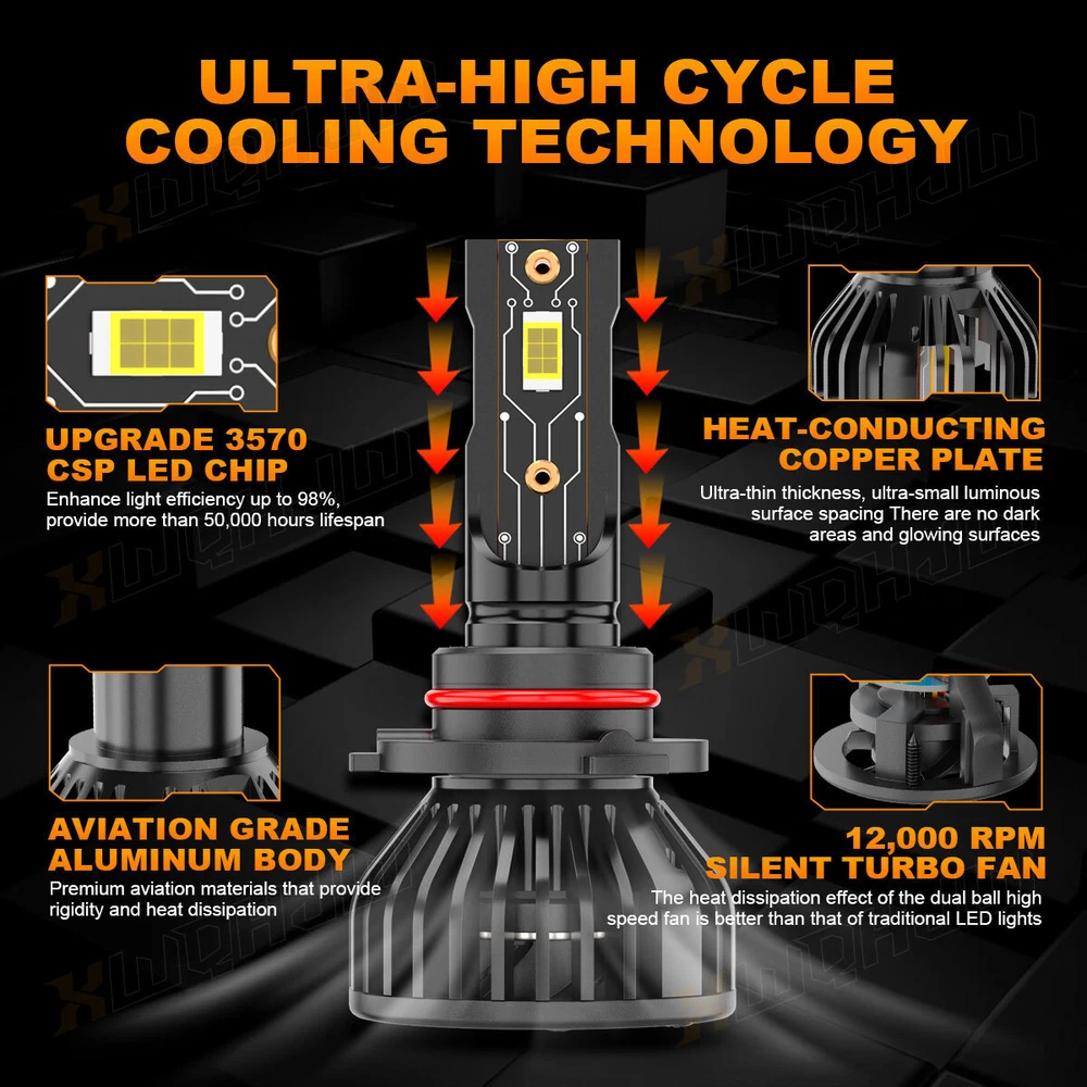 The XWQHJW NEW Super LED Bulbs stand at the zenith of automotive lighting. With an extraordinary 40,000 lumens output, they ensure unmatched brightness and road visibility. Using the advanced CSP LED chip technology, these bulbs symbolize the forefront of LED lighting performance. Two Aces——What Makes the XWQHJW Bulbs Invincible? 70W 40000LM Top Tier CSP LED Chips ● 70W High-power LED Chip ● 40,000LM Ultimate Light Output ● 46% High Light Efficiency (Ordinary LEDs only have 25%) ● Anti-light decay, after 50,000 hours of lighting test, brightness only reduced by 2%. Low Temperature Signify Stability and Safety ● The only triple copper tube heat dissipation design on the market ● After 30 minutes of daily commuting, the chip temperature is only 92°C/197.6°F. The same power LED from other brands has a temperature of 108°C/226.4°F. Halogen bulb temperatures exceed 700°C/1292°F. How Do I Know These LED Bulbs are Right for My Vehicle? Plese check the size on Ebay fitment guide system ( Ebay filter system may not be up to date. ) Plese check your vehicle user manual or original halogen bulb, the part number is marked above. Plese search "automotive bulb look-up" online, and enter your vehicle info to find out the correct size. Or in 'Customer questions & answers', write down your vehicle year, make, and model, we will help you check. XWQHJW Q&A RETURNS SHIPPING PAYMENT CONTACT US XWQHJW Q&A Q1: Will this bulb fit my vehicle? A1: We can match almost any vehicle to one of our bulb sizes. eBay only lets us include some vehicle fitments per listing, but if your vehicle does not show up on the compatibility table at the top of our listings, welcome you to contact us for free consulation before purchasing a product. Q2: My item has not arrived, what's taking so long? A2: Sometimes items take longer than expected, especially if it’s going far or to rural area. Check with your post office to see if your item has been held up. Sometimes Royal Mail will not update a tracking number until it has arrived at its destination. If your item still don't arrive after a few days, let us know so we can double check for you and help solve it asap. Q3: My bulbs won't fit, help! A3: Special bulb holder may be required. See if you can take the holder from the stock bulb. If not, let us know. The bulb size may be wrong, double check the item you received with the item you ordered. Do you have an aftermarket lighting housing? These may not be perfectly fitted for aftermarket bulbs and will require some manual modifications. Q4: Neither side lighting up? Both sides flicker, hyper flash, or work inconsistantly. A4:Check the light fuses, and then check the ballast plugs to insure correct installation. If this doesn't work, there may be a voltage problem with the vehicle. You probably just need a relay or capacitor. Even though some bulbs are builtin resistors, they may still need a decoder. Q5:Why after installing the bulb, there have the flicker/error message/radio interference? A5: Some car's system is sensitive to the led bulb, we can send the decoder/resistor to help you solve the problem. RETURNS (1) We offer 60 days return policy. Please contact us within 60 days t from the date you receive your order if you have any issues with the product or want return .Refund will be send after we got your resend package. (2) All returned items should be in the original packaging , return tracking information should be provided. (3) Buyer is responsible for return shipping cost due to the problem not caused by item quality itself. (4) Items to be returned must be in resalable condition, for example: Item do not fit your vehicle perfect The item arrived be broken Parcel Lost If you have problems with the above issue, please Contact Us immediately. SHIPPING Domestic(U.S.) Shipping All items will be shipped out within 1 or 2 business days with cleared payment. Please included your phone number to the payment note for prompt and secure shipment. Tracking numbers for all orders are added to eBay once they have been dispatched; please login to eBay to find the tracking information for your order. Most items are shipped USPS first class mail, delivery usually takes just 4-6 business days. Additionally, we do not ship on weekends. International Shipping Puerto Rico: As we use standard USPS, PR is considered a US territory for mailing purposes, and can be selected as such at checkout. Shipping will be domestic U.S. rates. For Canada & Mexico or other countries We use the eBay's Global Shipping Program. Once you’ve paid for your item, we'll send it to the global shipping center within 1 or 2 business days. From there, it's sent to you. Lost Shipments For non-signature required shipments: If the tracking information that corresponds to a shipment confirms that the product was delivered to the intended address, the customer assumes all responsibilities and liabilities for the receipt of the shipment.The Customer is the one who provided XWQHJW with the ship to information, and in doing so absolves XWQHJW of any liabilities for missing or stolen deliveries. Customs Fees for International Shipping Shipments are marked with the value of your purchase price. International customers are responsible for any tariffs or customs fees that may be associated with their shipment. Please check your country's laws and regulations before your purchase. PAYMENT Variety of payment methods are accepted, such as credit, debit, gift cards, Apply pay, Google Pay, Paypal and Paypal Credit. We only ship to the confirmed shipping address given with the payment. If you want to ship to other address, please change your shipping address before you make payment. To avoid initiating an unpaid item claim, please pay within 7 days. CONTACT US If you have ANY questions with shipping, product or service, please Contact Us first before leaving feedback/write a review or filing a return case. We will solve the problem! We always put our customers firs