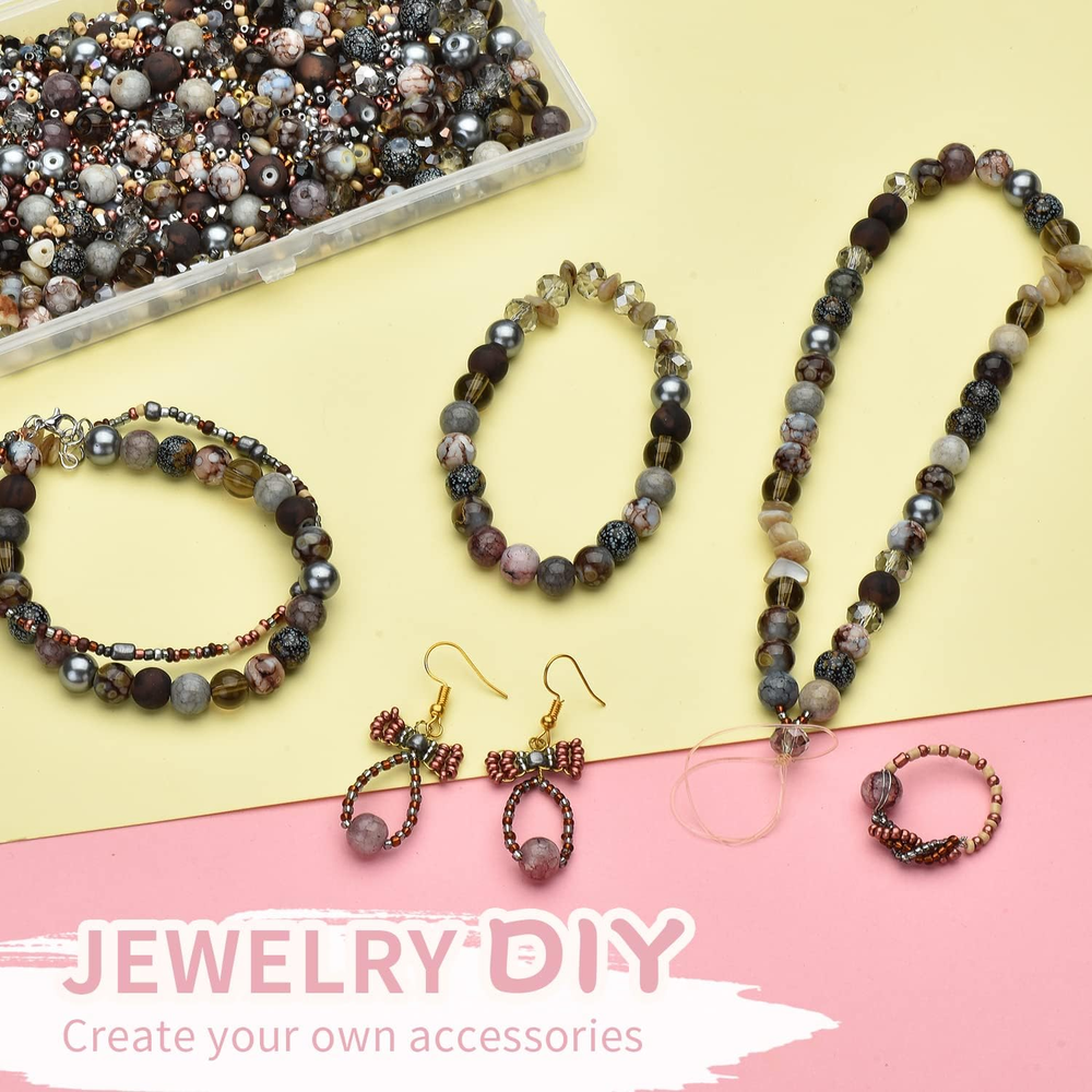 Great jewelry making supplies: Enrich your jewelry collection with this new beads set, which provide assorted beads for your beads design. This crystal beads for jewelry making include 200pcs 8mm assorted beads, 200pcs 4mm bicone crystal beads, 500pcs 3-4mm seed beads, can meet all your DIY needs. Assorted Mixed Grey Crystal Beads: Including 8mm round beads, pearl beads, rondelle beads, crackle beads, glass pony beads, and rock beads to complete this bead kit. Safe and High Quality Material: Not the cheap acrylic beads, these beads mixed with glass beads, jade beads, gemstone beads, crystals and healing stones-all high quality beads, various shaped beads with smooth, shiny surfaces, excellent polishing. This bracelet making kit has good stability, and can maintain luster for a long time. Wide Application: Perfect for beading, jewelry making, bracelet earring necklace making supplies, phone charm, charm bracelets, pendants, waist beads kit, hairpin or hair braids, fashionable shoes decor and party decoration. Guarantee: All beads have been checked for multiple times and packaged well before shipping. You can refund or replace if you are not satisfied with them. If you have any confuse about product, plz feel free to contact us, we will reply and slove problem asap. Product Description Crystal Round Color: Ash Grey Spacer Beads Fit: Faceted Components/Wedding Dress Parts/Decorative Chandeliers/Pendants Crystal Beads Use: Suitable for decorations, ornaments, clothing accessories, wedding crafts, jewelry, bead curtains making and so on. DIY Jewelry Making design: Earring Making Kit, Friendship Bracelet Making kits, Waist Beads Making, Hair beads making, Bracelet beads, Art for crafts, Great gifts for friends. Package includes: √8mm 80pcs round patterned beads, √8mm 20pcs imitation gemstone beads, √8mm 20pcs transparent beads, √8mm 20pcs crackle imitation jade beads, √8mm 20pcs pearl beads, √6x8mm 20pcs rondelle beads, √20pcs gravel beads, √200pcs 4mm bicone crystal beads, √500pcs 2-4mm seed beads,