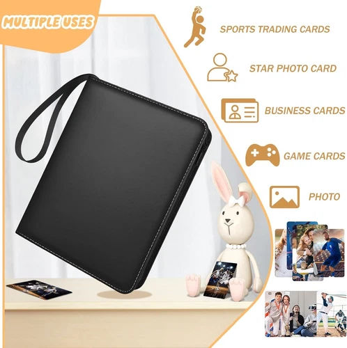 9 Pockets Trading Card Binder with 900 Double-Sided Pockets, PU Zipper Top Loader Binder with 50 Removable Sleeves for Basketball Baseball Football Playing TCG Card LuxeFusion Product Description Features 【900 Pocket Design】- The exquisite RJVW card collect binder has 50 pages of double-sided transparent pockets, with each side holding 9 cards, allowing you to collect up to 900 cards! The extra-large capacity can hold all your cards! The card binder’s card page pockets measure 2.8*3.9 inches, perfect for storing the cards you wish to collect. This trading card binder is not only designed to protect your cards but also serves as an excellent way to showcase your collection! 【Unique Design】- The sport card binder comes equipped with removable metal clips, allowing you to easily add, remove, and move card pages. The transparent pocket design makes it easy to perfectly display your cards! The RJVW sport card binder also features a wrist strap, making it convenient for both children and adults to carry, whether at home or on the go. Take your cards with you and show them to your friends! 【Multiple Protection】- RJVW playing card binder’s surface is made of PU leather material, making it waterproof and stain-resistant. The top loader binder’s exterior has been reinforced to protect your cards from being squeezed! Additionally, the trading card binder is equipped with a zipper design, ensuring your cards are safely stored. This is a must-have for card collectors! 【Compatible with Multiple Cards】- The RJVW card binder is compatible with standard-sized cards, such as baseball cards, basketball cards, star trading cards, TCG cards, 3 inches photos, playing cards, and more. If you have a collection of cards, you’ll definitely need this RJVW card holder binder! 【Perfect Gift】- This is a perfect gift designed for card enthusiasts. The beautiful card binder offers multiple protections for your cards and can be given as a birthday, Christmas, New Year, or holiday gift. It’s the ideal present for card collectors, kids, and friends! Product Details Brand: RJVW Occasion: New Year, Chirstmas, Birthday, Thanksgiving Color: Black Material: Polyurethane (PU) Specific Uses For Product: Photo Album, Card Storage Recommended Uses For Product: Trading Card, Recipe Card, Stamp, Camera Film Target Audience: Adults Model Name: CASC-001 Included Components: 50 Removable Sleeves Special Feature: Dust Resistant, Lightweight, Large Capacity, Stain Resistant, Flip Style: Classic Shape: Square Product Dimensions: 13.1"L x 10.4"W x 2"H Occasion: Christmas, Birthday, Halloween, Valentine's Day Pages: 100 Pages Size: Large Number of Pieces: 900 Max Input Sheet Capacity: 900 Manufacturer: Shenzhenshi Jinglongyu Dianzishangwu Youxiangongsi Item Weight: 2.38 pounds Country of Origin: China Item model number: CASC-001 Item Package Quantity: 1 Special Features: Dust Resistant, Lightweight, Large Capacity, Stain Resistant, Flip Batteries Required?: No Brand: RJVW Occasion: New Year, Chirstmas, Birthday, Thanksgiving Color: Black Material: Polyurethane (PU) Specific Uses For Product: Photo Album, Card Storage 🚚 Free Shipping All orders ship free and fast to your doorstep. 🔁 Easy Returns Satisfaction guaranteed. 30-day returns, no questions asked. 💬 24/7 Support Contact us anytime; we’re here to help, day or night. Brought to you by LuxeFusion – Quality you can trust.