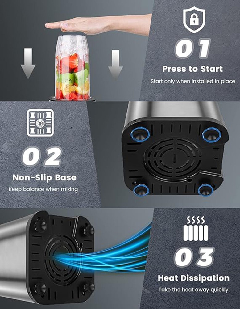 About this item Upgraded 304 Stainless Smoothie Blender: Most blender for smoothies on the market only have a 4-leaf gearless blade, but Vewior smoothie blender has been comprehensively upgraded to 304 stainless steel 6-leaf gear blades. This design allows you to blend and extract nutrients easily. Turn the toughest whole foods into nutritious shakes, smoothies, and nut butter in 10 seconds. Capacity Upgrade & Non BPA: This blender for shakes and smoothies comes with 2*22 oz/650ml portable cups. Besides, includes 2 travel lids, which add portability for carrying. All parts are BPA-free to ensure healthy drinking. Enjoy tasty & healthy homemade beverages everywhere. Intermittent Press Operation: The blenders for kitchen adopts powerful pulse technology, which triggers the motor to rotate at high when pressed, with a max rotating of 25000 rpm, making the perfect drink within 10-20 seconds. Simply press and hold the smoothie blender's cup and immerse in the stirring process. Easy to Clean Smoothie Blender: Fill with 3/4 clear water, and a few liquid dish soaps, shake the personal blender cup, and press down for cleaning. The blade is partially removable and can be cleaned by just rinsing with tap water. The blender for shakes and smoothies cups and to-go lids is dishwasher safe (below 158℉). Multifunctional Blenders for Kitchen: With a 900W powerful motor, VEWIOR small blender for shakes and smoothies for fast mixing. The 6-leaf blade can be used for smoothies, juices, shakes, baby food, ice cream, and protein drinks. 6 Pieces Personal Blender for Kitchen, 2*22oz Cup with To-Go Lids for Fruit Vegetables, Beans, Nuts, Spices 12.51"D x 4.84"W x 11.41"H 2*650ml Portable Cup ; 2*Travel Lid ; Motor Base ; 6-leaf Blade for Blander