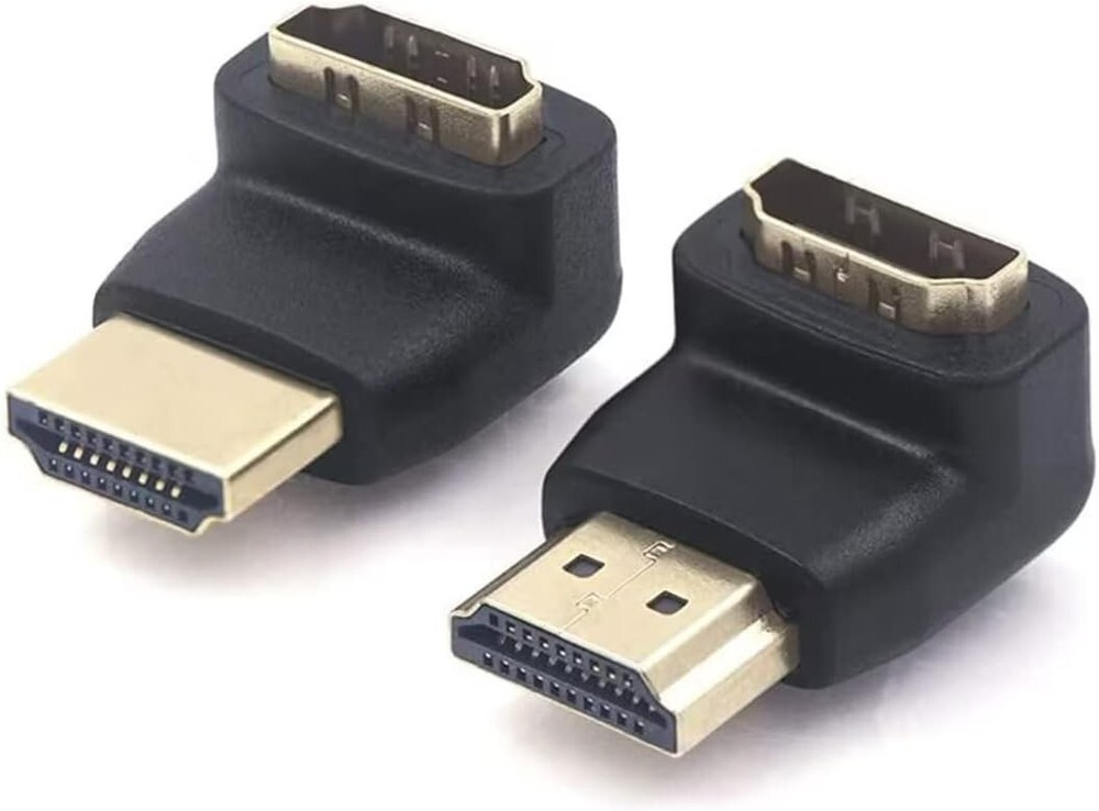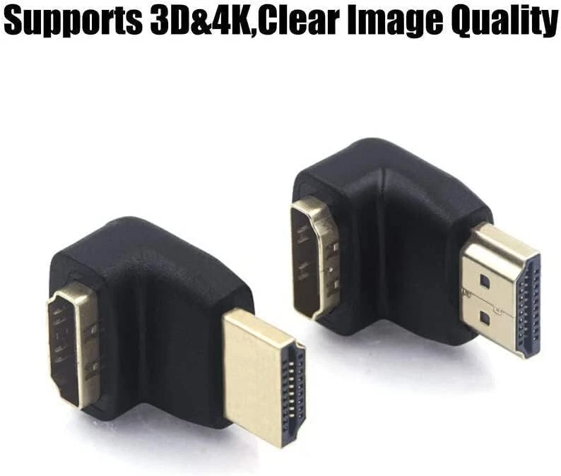 HDMI 90 and 270 Degree Adapter 2-Pack, Right Angle HDMI Male to Female L Adapter Connector 3D&4K Supported The angled HDMI cable extender avoid bending HDMI cables and relief the strain on HDMI ports to increase the lifespan of your device and HDMI cable This HDMI Adapter right angle supports resolution to 4k@60Hz(UHD), including 4096x2160, 3840x2160, 2560x1600, 2560x1440, 1920x1200, and 1080p Fully compliant with the HDMI standard, these right angle and left angle HDMI adapters are capable of carrying the increased bandwidth of HDMI at 18 Gbps This port saver will help ease the strain at the point of connection to eliminate damage to the HDMI ports on your devices Convenient and cost-effective 2-Pack (90 degree and 270 degree) HDMI adapters provide spare or replaceable units for different equipments. Gold plated connectors resist corrosion and provide rigidity High Speed HDMI Male to Female right angled adapter HDMI 90 Degree and 270 Degree Adapter This HDMI Male to Female Adapter allows you a convenient way to inlarge your wall-mounted TV spaceYou don't need to bend your HDMI cables excessively which may demage the cable or even worse the ports on your expensive equipment 4K Resolution Support This hdmi adapter right angle supports resolution up to 4Kx2K, supports 4096x2160, 3840x2160, 2560x1600, 2560x1440, 1920x1200, and 1080p Note 4K video support requires a 4K equipped source and output displayThis HDMI Adapter Right Angle suitable for standard HDMI port, do not fit USB port