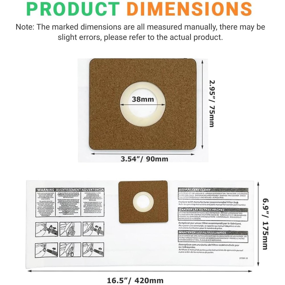 $ 4.7590669 Vacuum Filter Bags Type C, Compatible with Shop-Vac 3 Gallon Vacuums
