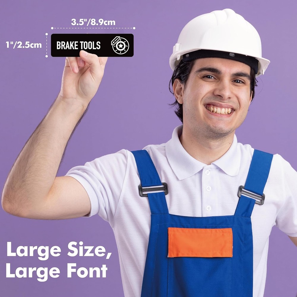 Free eBay listing template designed by dewiso.com 90 PCS Magnetic Toolbox Labels, 82 Pre-Printed & 8 Blanks Large Size Tool Chest Organizer Labels Strong Magnetic & Easy to Read Printing Fits All Brands of Steel Tool Box Drawers (Black, 3.5” x 1”) FREE AND FAST SHIPPING! About this item Value Pack: It comes with 90pcs magnetic toolbox labels. With 82 pre-printed labels identifying common tools and 8 blank labels for customization, organizing your toolbox has never been easier or more efficient. The set offers a convenient way to keep your workspace tidy and systematic. Strong Magnetic Backing: Each label features a strong magnet that securely adheres to any metal surface. This ensures that your labels stay in place on tool chests, metal cabinets, or any magnetic-friendly surfaces, even when you're on the move. Easy to Read and Identify: Each label measures 3.5” x 1”. It adopts clear and bold lettering that makes identifying tools quick and hassle-free. The high-contrast design aids visibility ensuring you can find the right tool for the job at a glance, saving you time and frustration during any project. Erasable and Reusable: The magnetic label is coated with PET film, featuring a smooth and durable writing surface. A premium glossy finish not only provides a smooth writing experience but also ensures a hassle-free clean-up. Simply wipe off the dry-erase markings with no ghosting or stains left behind, maintaining a clean surface for new notes and drawings. Wide Usages: The label set is perfect for toolboxes, filing cabinets, whiteboards, and more. Whether you're at home, in the workshop, or in the office, these labels help you maintain a tidy and systematic environment. No more guessing what’s in the toolbox. Product We offer a 30-Day Return Policy on items which you are not completely satisfied with. You have the option for a full-refund or an exchange of the item. No returns are available on items shipped outside of the US . Shipping We offer Free Shipping to the US and ship within 2 business days of payment, usually sooner. We use UPS express shipping. That's why your products are usually delivered within 3 days . Contact We try our very best to make sure every customer is completely satisfied. If there's a problem , message us! We're happy to help. 24/7 live chat available.