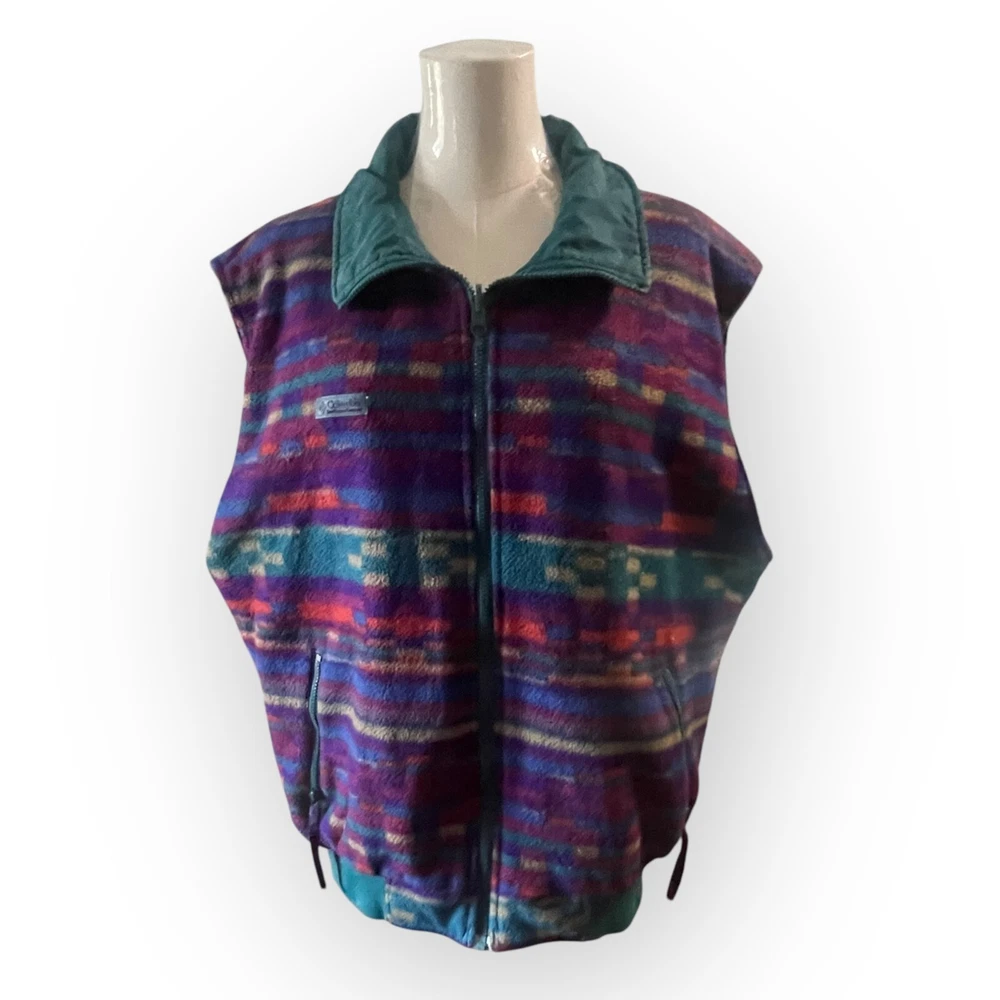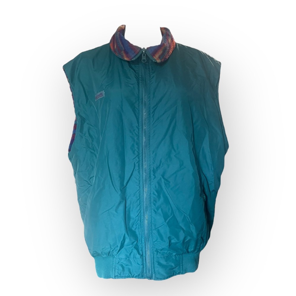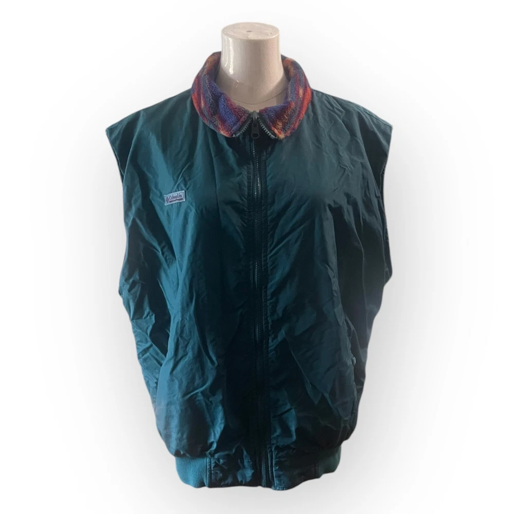 Brand: Columbia Size: Men's Large Approximate Measurements: - Pit to Pit: 25" - Length: 28" Color: Multicolor, green Features: - Collared - Zippered closure - Reversible - Pockets - snap on one side and zippered on the other - Sleeveless - Perfect for hunting, cold weather Condition: Good vintage condition no rips, holes or stains. Mild fade and pilling from age. Mild rub on snap pocketing. Material content tag can no longer be read Si12