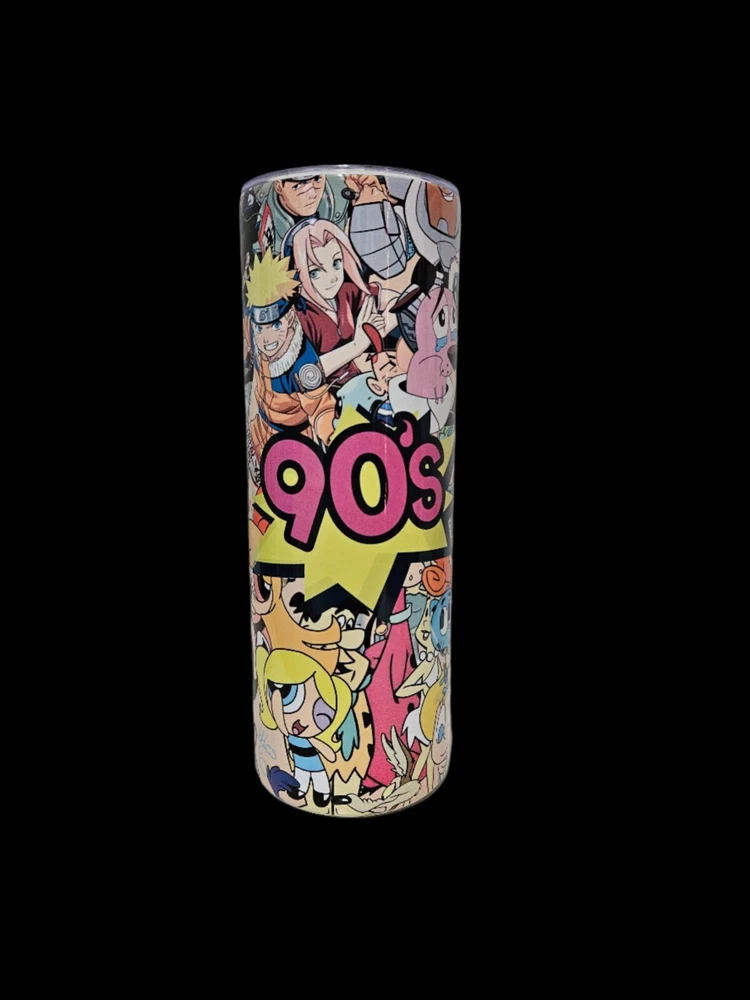 90s Tumbler Kit Includes: 20oz Insulated Stainless Steel Tumbler Steel Straw and Straw Cleaner 2x3 Hard Magnet 2x3 Soft Magnet Set of Car Coasters (2)