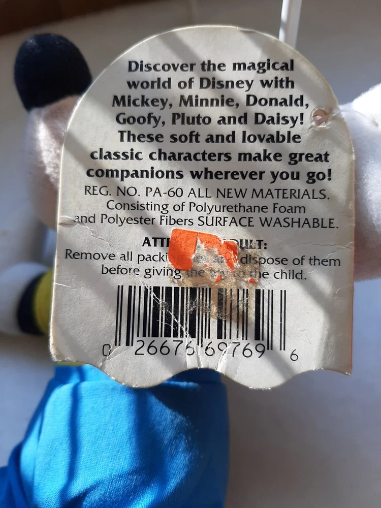 This adorable 90s Mickey plush is a nostalgic gem with vintage charm! While it shows some wear like loose threads and light discoloration, it’s still super soft and full of character. Perfect for collectors or Disney fans who love a well-loved piece with history. The tag adds authenticity—just check the photos for details. A sweet find for any Mickey enthusiast!