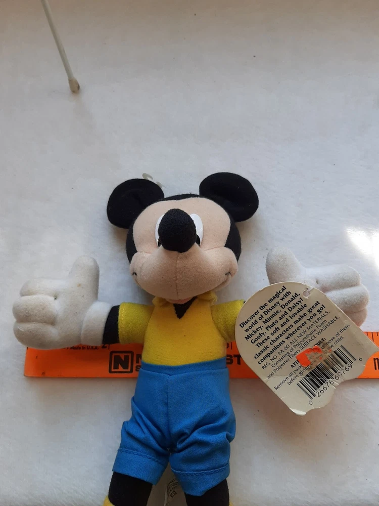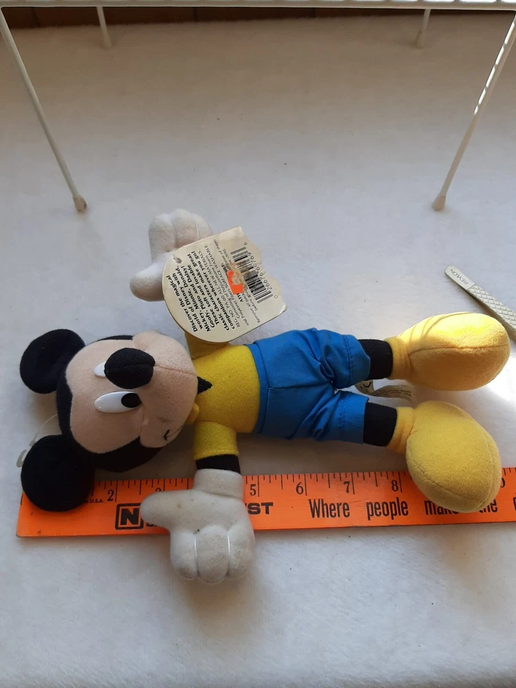 Mattel Vintage 90s Mickey's Stuff For Kids Plush Toy Tags Disney Mickey Mouse with tag In good pre-owned condition may show signs of wear from use/handling/storage/display. Please view all pics for condition/details/flaws/issues. SOLD AS IS There is damage to tag and some loose strings. There is/maybe marks/spots/dirt/debris please see photos 1-24, there is/maybe paint loss/sticker loss please see photos 1-24, there is lite discoloration please see photos 1-24, there are surface scratches to item please see photos 1-24, please see all photos for condition/issues/details.