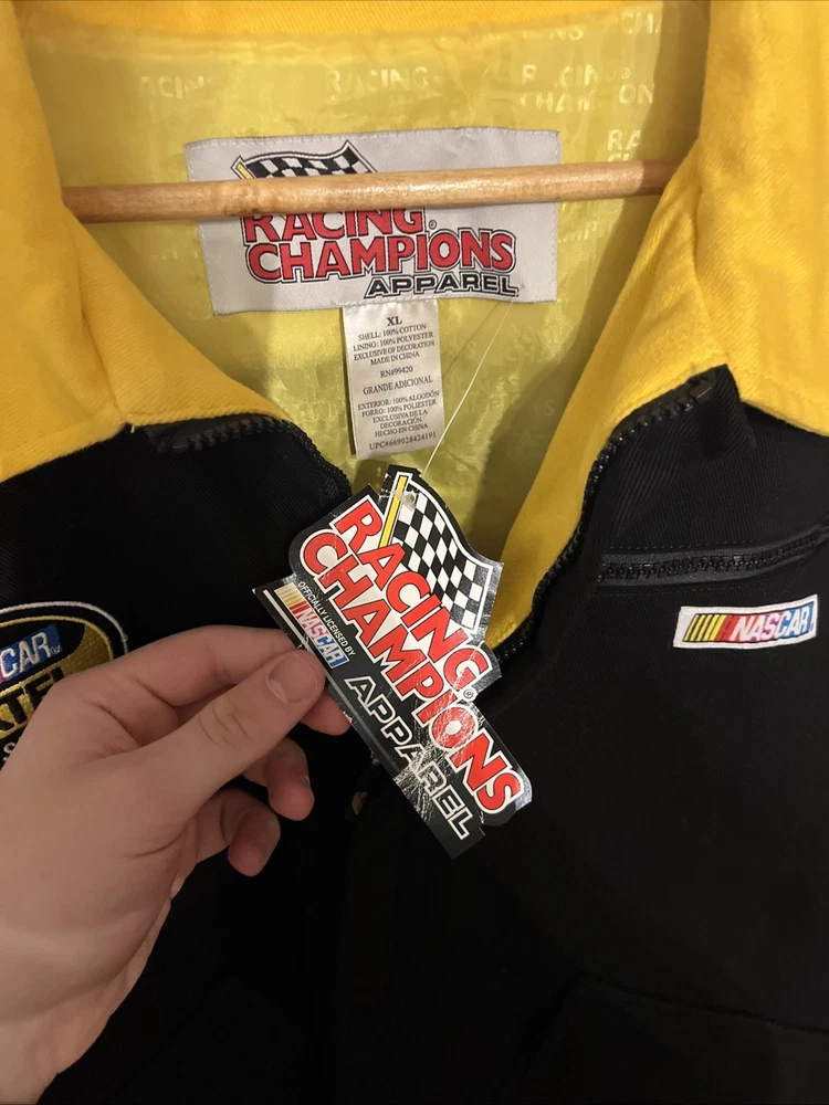 This vintage 90s Y2K NASCAR Nextel Cup Series coat features Jeff Gordon's iconic design and branding. Officially licensed by NASCAR, this black jacket in size XL is a must-have for any fan of auto racing and Jeff Gordon. The jacket represents the nostalgia and excitement of the sport and is perfect for any man looking to add a piece of racing history to their collection.