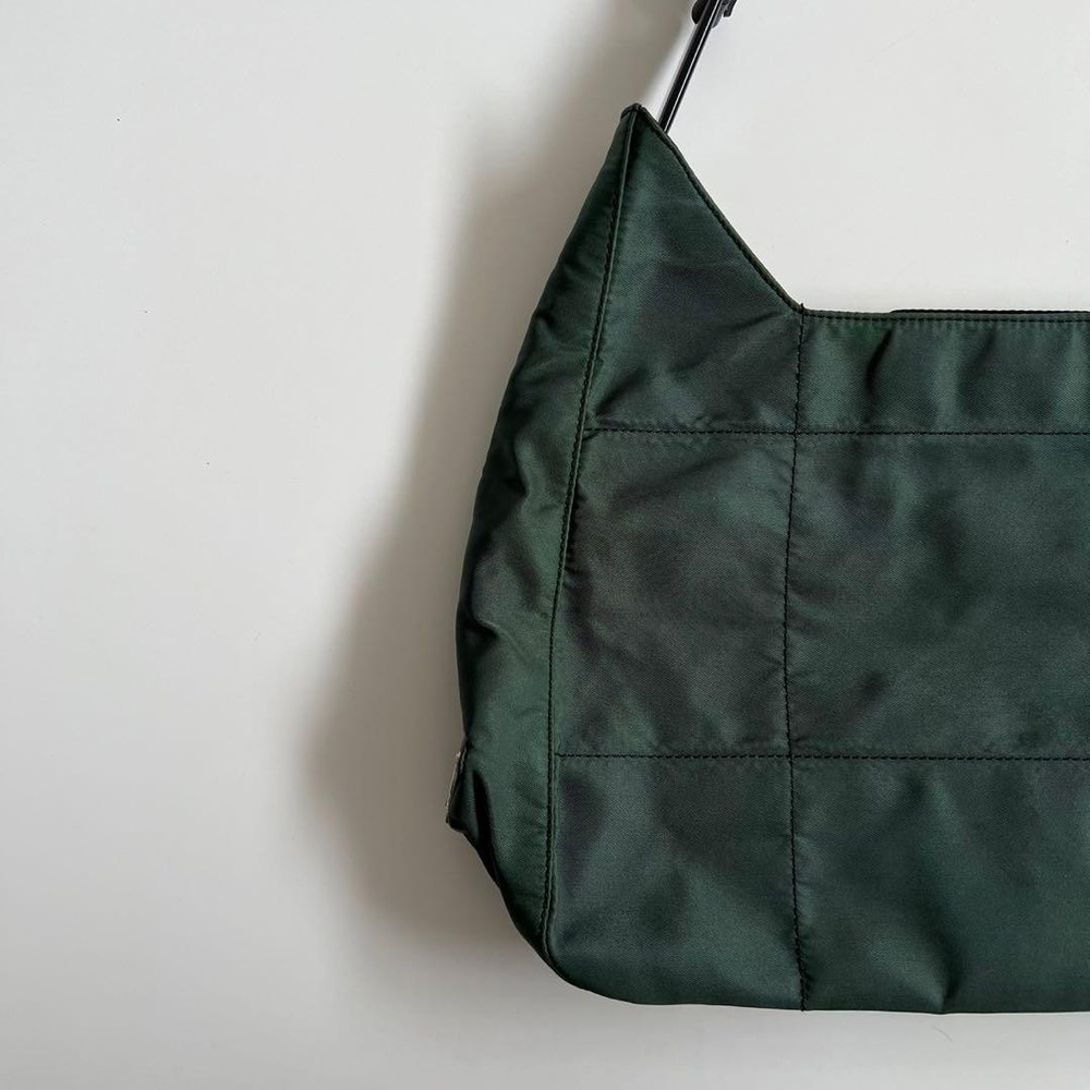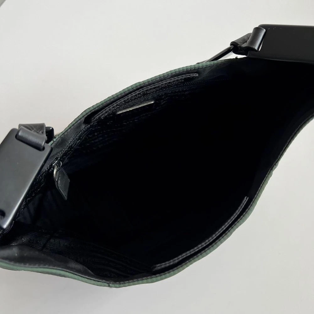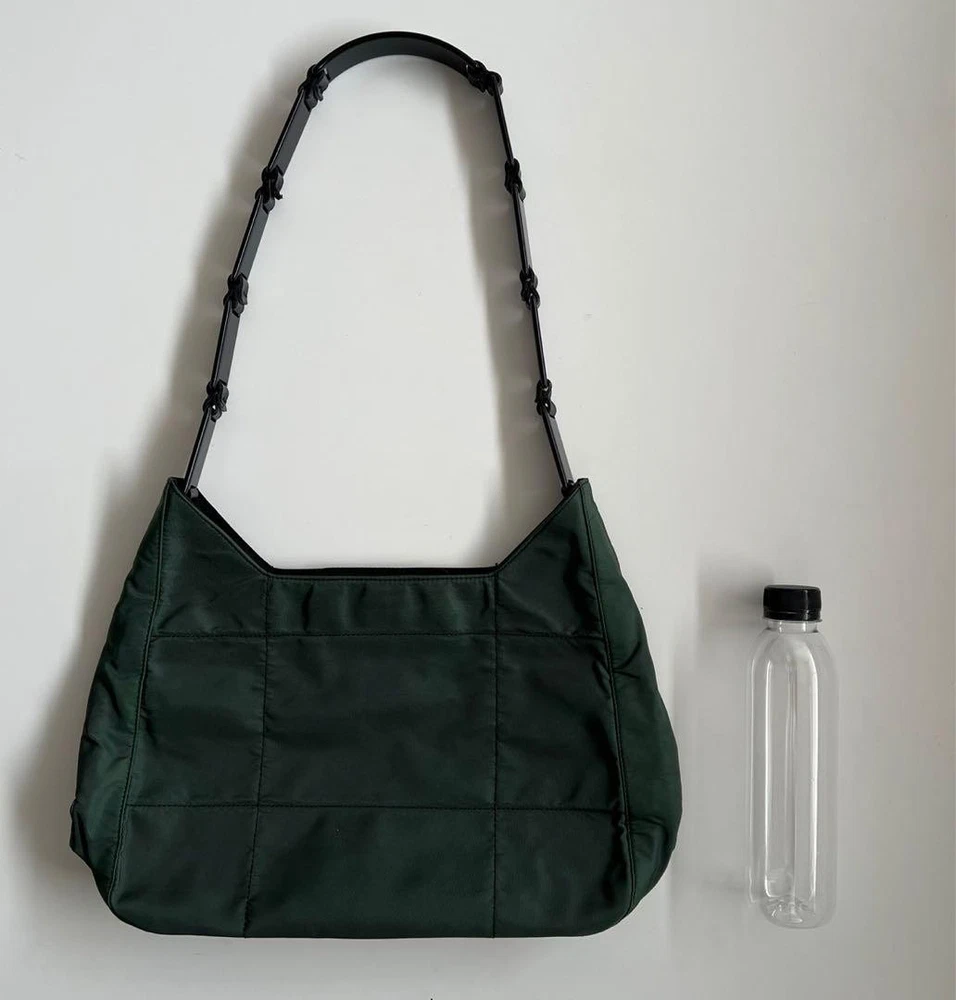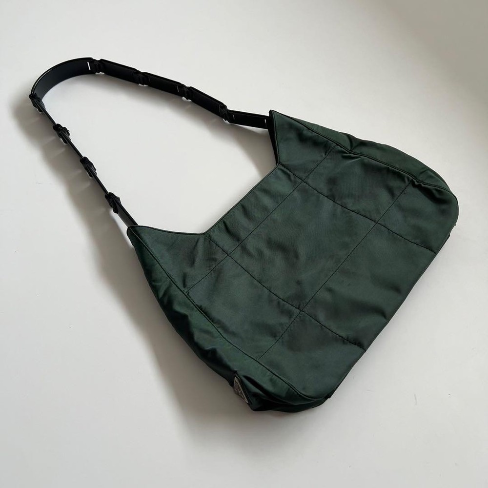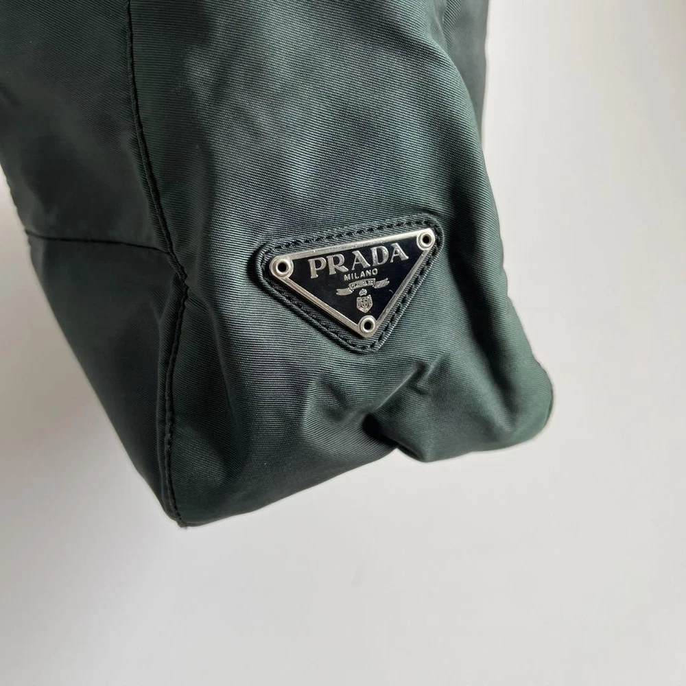 This Prada shoulder bag is a total vibe! The patchwork nylon and plastic handle give it such a cool retro feel, while the leather accents and silver details keep it classy. Spacious enough for daily essentials but still sleek—love how it elevates any casual outfit. The condition is nearly perfect, and the khaki/black combo goes with everything. A rare find that’s both stylish and practical!