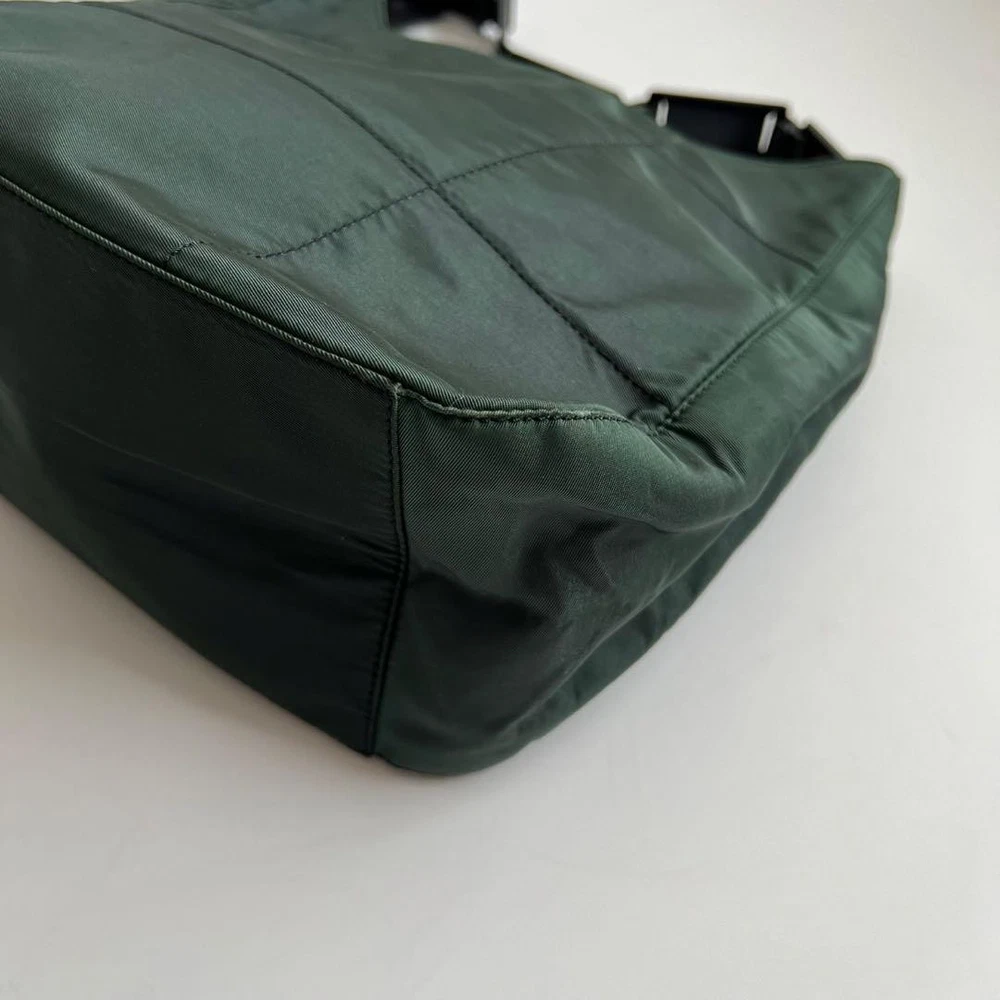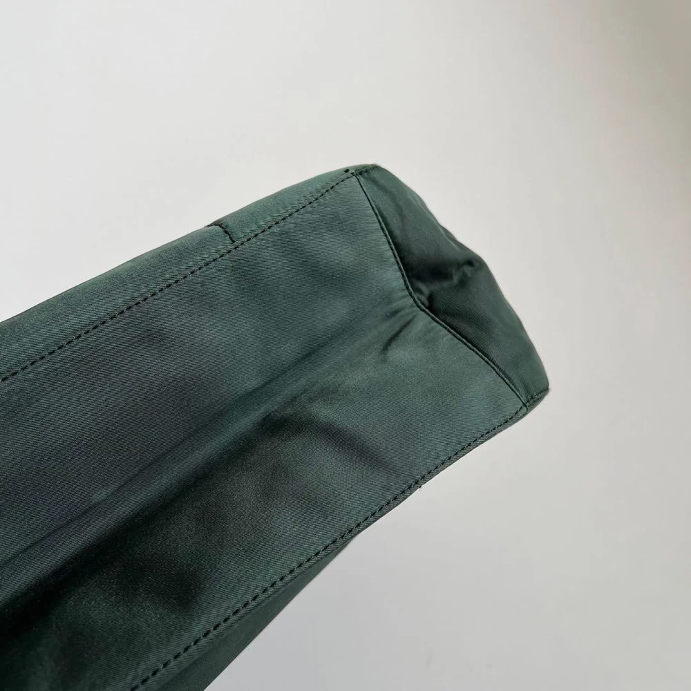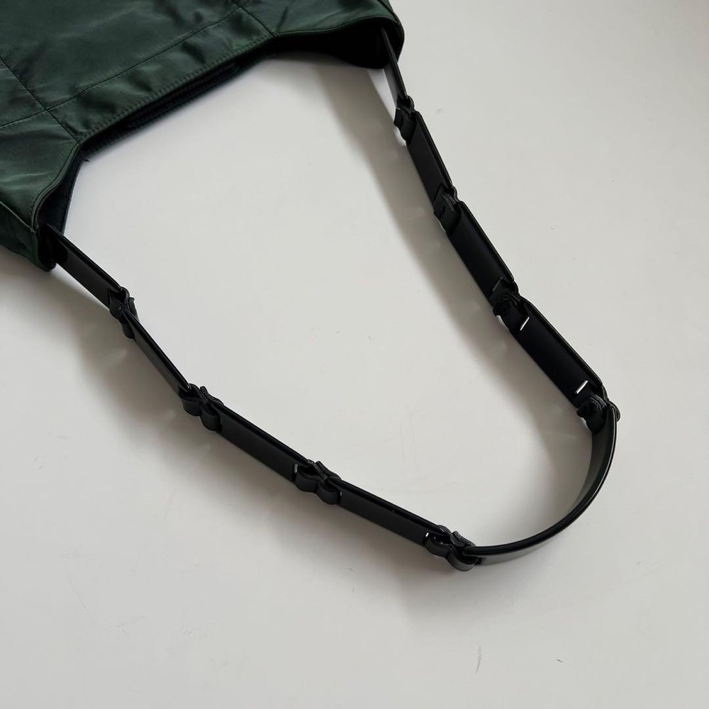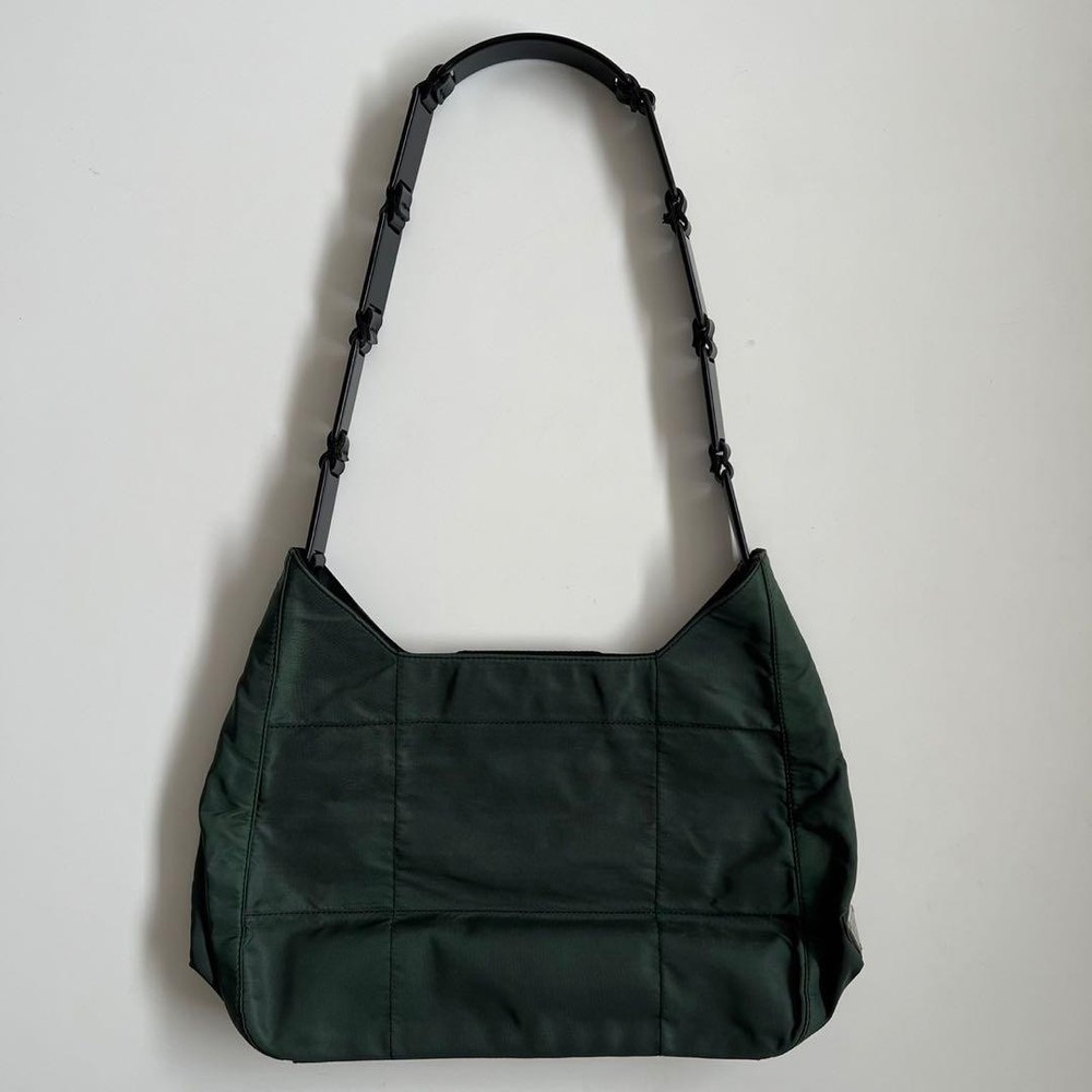 This Prada shoulder bag is a total vibe! The patchwork nylon and plastic handle give it such a cool retro feel, while the leather accents and silver details keep it classy. Spacious enough for daily essentials but still sleek—love how it elevates any casual outfit. The condition is nearly perfect, and the khaki/black combo goes with everything. A rare find that’s both stylish and practical!
