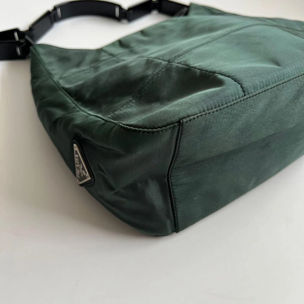 90S Prada Plastic Patchwork Shoulder Bag Key Features Prada Vintage Nylon Patchwork Shoulder Bag. This stylish bag features a nylon body with a unique patchwork design, leather accents, and a distinctive plastic handle. The bag includes a triangular Prada logo and silver plate details, making it a rare and fashionable piece. Perfect for casual or everyday use, it comes in khaki and black colors. Dimensions: 21cm x 29cm x 10.5cm; bottle holder: 19cm x 5cm. Excellent condition with minimal signs of wear. Ideal for adding a touch of luxury to your wardrobe. Item Specifics: Brand: Prada Type: Shoulder Bag Material: Nylon, Leather Color: Khaki, Black Size: 21cm x 29cm x 10.5cm Country/Region of Manufacture: Japan Specifications Brand Prada Country Japan Product Description Description Thank you for your interest. This item is not new, but a used item that was given away. Please check the photos for the condition of the item. Please understand that the condition of the item is subjective and the standard of evaluation and feeling may vary from person to person, so please be aware that this is a used item before bidding. Please check the photos for the condition of the item, such as scratches and stains. To prevent problems, please feel free to contact us if you have any questions about the size or other details of the item. We will be happy to adjust the price. We will do our best to ship your order as soon as possible. We will do our best to ship as soon as possible, but there may be delays during the busy harvest season. Remarks All the products we sell are obtained and sold by pawn shops that are authorized brands, so all the products we handle have been authenticated to meet our strict standards for authenticity, so please buy with confidence. Payment Supports managed payments Please pay within 5 days after auction is finished. About Us We are located in Japan. It's our pleasure to make you happy by proposing our recommend item. If you have any questions or request about items, please feel free to ask us. International Buyers - Please Note: -Importduties, taxes, and charges are not included in the item price or shipping charges. These charges are the buyer's responsibility. -Please check with your country's customs office to determine what these additional costs will be prior to bidding/buying. -These charges are normally collected by the delivering freight (shipping) company or when you pick the item up - do not confuse them for additional shipping charges. -We do not mark merchandise values below value or mark items as - gifts - The US and International government regulations prohibit such behavior. Thank you for your understanding