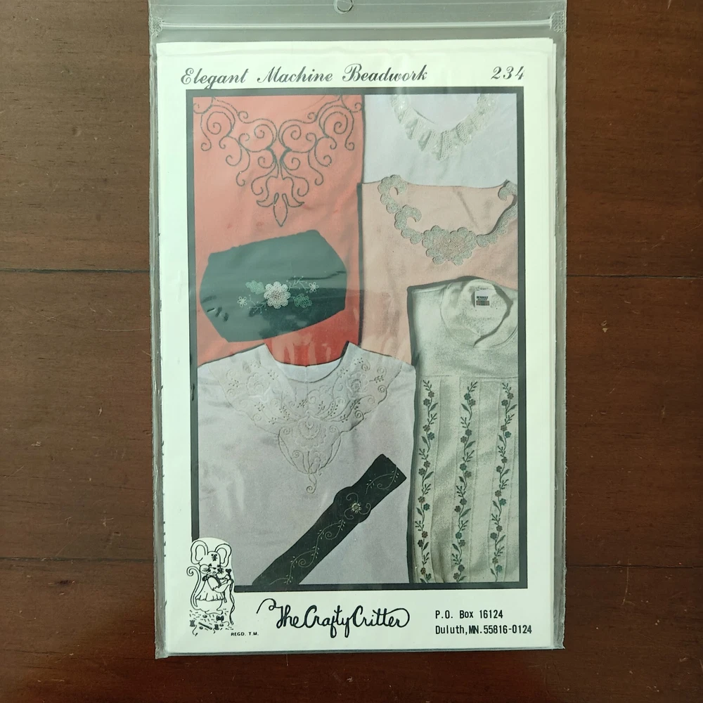 Description: Create stunning and elegant embellishments with this "Elegant Machine Beadwork" pattern set #234 from The Crafty Critter. This kit includes patterns and instructions for various designs, including floral motifs, scrollwork, neckline edges, and abstract floral designs. Perfect for crafting embellishments on blouses, purses, belts, and other garments. Techniques include single bead placement, loose strung beads, and couching. Note: Garment construction instructions are not included—this set is designed for beadwork and decoration only. Item Specifics: Brand: The Crafty Critter Year Published: Not specified (likely early 1990s, based on other sets) Type: Beadwork and Embellishment Patterns Techniques Included: Couching, single beads, and loose strung designs Included Items: Patterns for multiple garments and accessories, with detailed instructions Condition: Used, in excellent condition. Patterns and instructions are complete and intact. Condition: This vintage pattern set is in excellent condition. The plastic sleeve shows light wear, typical for its age, but the patterns and instructions are clear and unmarked. Keywords: Vintage sewing patterns, beadwork embellishments, elegant designs, retro crafting supplies, intricate embroidery patterns, couching beadwork, DIY decorative embellishments, Crafty Critter designs. Please review pics carefully & feel free to send any questions, concerns, or offers you may have! All items are stored in a weather & temperature-controlled environment, free of pets or smoke. All Items are packaged carefully to ensure fast & safe shipment! I take very good care to pack all of my shipments very carefully to ensure your item reaches you safely! Be sure to check out the other great items in my store!