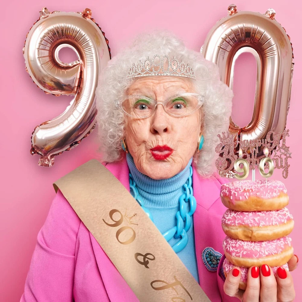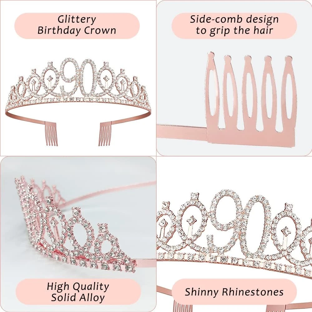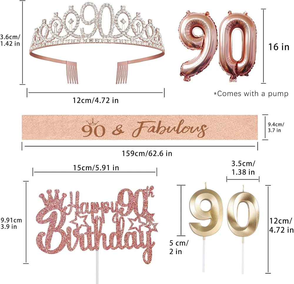 90th Birthday Decorations for Her - 5pcs Gifts Including Tiara Rose Gold Product Details Theme: 90th Birthday Occasion: Birthday Pattern: 90th UPC: 780007399740 Manufacturer: KENJOVIVO Product Dimensions: 0.5 x 0.5 x 1 inches Item Weight: 5.9 ounces Item model number: HGRG Color: Rose Gold Material: Alloy, Satin Included Components: Sash Unit Count: 1.0 Count Brand: KENJOVIVO 【90th Birthday Decorations for Her】Glittery 90th birthday tiara crown, birthday sash for women, balloons, birthday number candles and happy birthday cake topper. All decorations are using luxuriant nobility rose gold color, you or your women will be the bright people in the party. 【Gorgeous Birthday Crown for women】Carefully made of high quality alloy and rhinestone, The gorgeous and shining crown is a perfect blend of your noble temperament under the light of the lamp. Crown with combs that make sure it can grip the hair more tightly. 【Rose Gold 90th Birthday Sash】The birthday sash is made of high quality glitter satin with foil lettering and the sash is in 63 inch length with an attractive gold pin that can be adjusted to the desired length when used. 【Perfect party cake decorations】90th birthday candles, 90th balloons and Cake topper is a funny choice for your party cakes. Our candles will last a long time. As you celebrate with your family and make your wishes, our digital candles will remain lit until you are ready to blow them out. 【Unique Celebration for Her】We can only experience one birthday at each age. Every birthday is a hope for the year ahead and a remembrance of the past year. Create every birthday beautiful moment as birthday gifts for her with the birthday decorations set.