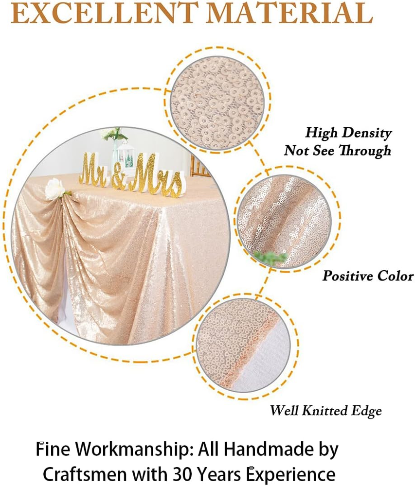 This champagne sequin tablecloth is absolutely stunning! The glittery finish adds instant glam to any event—perfect for weddings, parties, or holiday dinners. The size fits long tables nicely, and the sequins catch the light beautifully. It feels high-quality and drapes elegantly. Definitely a showstopper that makes any table look luxurious!