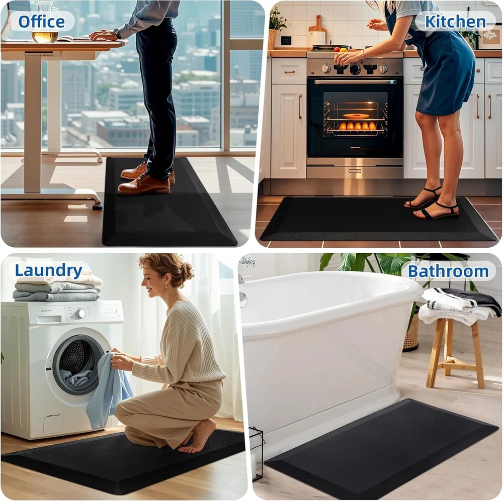 9/10 Inch Extra Thick Anti-Fatigue Kitchen Mat - Ergonomic Comfort in Black ‹ › ‹ › ‹ › ‹ › ‹ › ‹ › ‹ › ‹ › ‹ › 9/10 Inch Extra Thick Anti-Fatigue Kitchen Mat Ergonomic Comfort in Black Product Features: Size & Dimensions: Classic black 1 PCS mat measures 20''x32'' with an impressive 9/10 inch (23mm) thickness made from PU memory foam. Optimal Support: Designed with ergonomic features, this cushioned mat provides support for your feet, knees, lower back, and joints, making it ideal for cooking in the kitchen or working at a standing desk. Safety First: Features a non-slip bottom design that prevents slipping or falling, enhancing peace of mind, while the high-density PU foam prevents damage from accidental spills. Waterproof & Easy to Clean: The impermeable surface is waterproof and oil-proof, allowing for effortless cleaning with just a damp cloth to wipe away any mess or stains. Versatile Use: Suitable for various surfaces such as wood, ceramic, and marble, this anti-fatigue kitchen mat is safe to use around kids and pets. Perfect for long periods of standing in multiple environments, including the kitchen, laundry room, office, and even outdoors. Why You Need This Mat: Reimagine your everyday comfort with our 9/10 Inch Extra Thick Anti-Fatigue Kitchen Mat. Not only does it provide an elegant touch to your home with its classic black design, but it also elevates your standing experience by reducing stress on your feet and joints. Enjoy cooking, cleaning, or working without the discomfort often associated with standing on hard surfaces. Choosing this mat is not just an investment in comfort; it’s a commitment to your well-being. Order your Anti-Fatigue Kitchen Mat today and transform the way you stand! Shipping Free & Fast Shipping - We offer free shipping to most of the USA with a normal delivery time of 3-7 days. However, due to the current situation, additional delivery time (up to 3 weeks) may be required for some items. Alternative Carriers - We may use alternative carriers (e.g. USPS, FedEx, UPS, etc.) to ensure your package arrives safely and on time. Due to the use of multiple carriers, we are unable to provide a tracking number automatically. Handling Time - Orders are processed and shipped within 1-2 business days of receiving cleared payment. Shipping Restrictions - Shipping to Alaska, Hawaii, Puerto Rico, Guam, and other US territories may incur shipping charges or delivery restrictions. Please contact us before ordering, or your order can be refunded/cancelled. State Restrictions - There may be restrictions based on your state of purchase. For example, certain items may not be shipped to California due to state regulations. Contact for Tracking Updates - If you require tracking updates or have any concerns about the delivery of your order, please feel free to contact us, and we will be happy to assist you. Return 30-Day Hassle-Free Returns - We want you to be completely satisfied with your purchase. If you are not, you can return the item within 30 days of receiving it for a full refund or exchange. Easy Return Process - To start a return, simply contact us and we will provide you with a prepaid return shipping label and detailed instructions. Restocking Fee - There are no restocking fees for returns. However, the buyer is responsible for return shipping costs if the return is not due to a seller's error. Refund Processing Time - Refunds will be processed within 5 business days of receiving the returned item in its original condition. Payment We accept all major credit cards, PayPal, and Apple Pay for your convenience. Your payment information is secure and encrypted to ensure a safe and seamless transaction. Please complete your payment within 3 days of purchase to avoid any delays in shipping. Feedback Your feedback is extremely important to us. We strive to provide the best products and customer service possible. If you are satisfied with your purchase, please take a moment to leave us a positive review. If you have any concerns or issues with your order, please contact us before leaving negative feedback. We are committed to resolving any problems and ensuring your satisfaction. Contact Us If you have any questions or concerns, please feel free to reach out to our customer support team. You can contact us through the eBay messaging system. We are available Monday to Friday, 9:00 am to 5:00 pm EST, and we will do our best to respond to your inquiry within 24 hours. Buy it now and enjoy a pleasant shopping experience! UPC: Not Set Unit Quantity: 3.79 Room: Bathroom,Bedroom,Kitchen,Office,Laundry Room,Indoors,Outdoors Material: Polyurethane,PVC,High Density PU Foam Features: Easy to Clean,Non-Slip,Anti-Fatigue,Cushioned,Waterproof,Ergonomic,Anti-Break Department: Adults Theme: Not Set Brand: Unbranded Type: Kitchen Mat Color: Black Pattern: Not Set Shape: Rectangle Item Width: Not Set Item Length: 10 in MPN: Not Set Model: Not Set Size: 20 x 32 in Style: Modern Pile Height: Not Set Regional Design: Not Set Country/Region of Manufacture: Not Set Weave: Machine-Woven Pile Type: Normal Era: 21st Century (2000-Now) Unit Type: lb Personalize: Not Set Personalized: Not Set