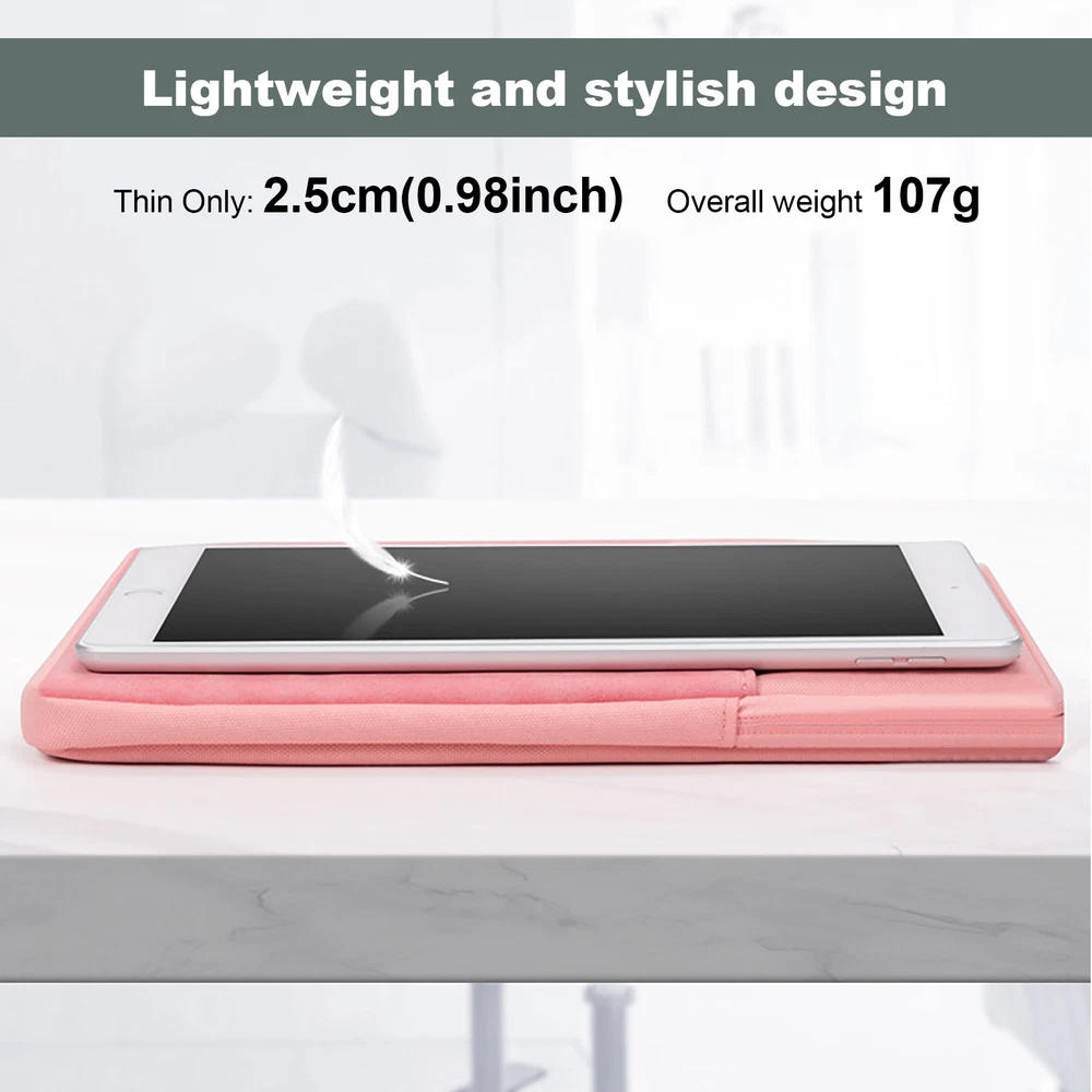 Product Description Features: - Environmental friendly and soft material, provide a comfotable hand feeling. - Thicken plush lining and 360 degree full cover, protect your tablet greatly. - Durable and practical, fashion and elegant. - Large capacity, can hold the tablet and other accessories. Specifications: Material: PU leather + waterproof oxford cloth Style: Fashion, zipper Demension: 9~11 inch: inner size: 265mm*210mm*20mm outer size: 280mm*225mm*25mm Package included: 1 x Portable sleeve bag powered by