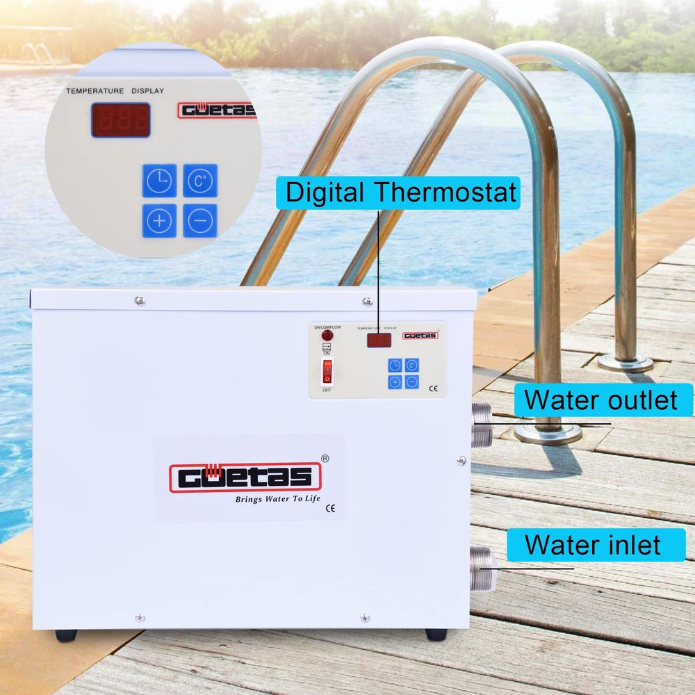 Store category Sign Up Now ! You may also like Product Description Bullet Points: Advanced Control Technology: Revolutionize your pool heating experience with our thermostat. Temperature is visually displayed for better precision and control, enabling easy adjustments through the intuitive touch screen. Internal Circulation System: The pool heater thermostat ensures efficient heating by automatically turning off when water temperature exceeds preset stages, and turning on when it drops. Reduce Energy Costs: Our pool heater thermostat's 304 stainless steel heating tube expedites heating time, allowing for quick and efficient heat transfer that reduces energy costs. Expert Installation: This high power pool heater thermostat ensures efficient heating. Ensure safe and correct wiring with a certified electrician upon installation. Swimming Enhancement: With our pool heater thermostat, entering the swimming pool won't be too cold, making your swim more enjoyable and comfortable, which will enhance your mood. With excellent thermal conductivity, it ensures that when the water temperature reaches or exceeds preset levels, entering the swimming pool won't be too cold. Features: 1, fuse protection, emergency and extreme cases of rapid fusing, quickly disconnect the power supply. 2, dry burning protection, two sets of temperature sensors always monitor the temperature. 3, water flow induction system, water shortage automatic shutdown: the pump does not start the machine does not work, can effectively prevent water shortage and non-standard operation to damage the machine. 4, the temperature limit switch, with the temperature reaches the automatic shutdown, the temperature can be automatically reduced after the work, can prevent the machine temperature caused by too high damage. Product introduction: Automatic constant temperature, can be adjusted according to the required water temperature heating constant temperature, the maximum set temperature of about 55°, safe and reliable, the machine is equipped with a water flow induction device, when the pump stops or the pipeline water shortage, the machine automatically disconnect the power supply. Note: The thermostat needs to be used with the corresponding size of the water pump, if the water pump and the thermostat do not match, the flow rate is too small, the heat pipe dry burning will cause damage. (9kw recommended with water pump flow 8 cubic meters/hour recommended with a lift of 14-21 meters of circulating water pump. Specification: Product name: Pool thermostat Power: 9KW/11KW/18KW Voltage: two-phase voltage 220v Current: 40.9A/50A/81.8A Inlet and outlet diameter: 1.5 inches Product weight: 9kg Product size: 490*100*380mm Features: Suitable for large and medium hot springs, swimming pools, Jacuzzi heating constant temperature system list: pool heater thermostat * 1pcs Instruction manual * 1pcs Accessory package * 1pcs Payment Delivery details Terms of sales About us Feedback & DSRs Payment Before you palce an order, please kindly make sure that you have a paypal account. We accept PAYPAL payment only. Payment should be completed within 2 days after auction closed, or unpaid dispute will be filed for an closing auction. An unpaid case will be filled after 4 days. Delivery details We ship to your eBay address. Each package will be shipped to US by UPS Regular Parcel with tracking number. Please check your shipping address carefully before checkout, it can't be changed if order completed. All items will be shipped within 1-2 business day upon receipt of payment.Orders placed on weekend will be shipped within 3 days. If you do not receive your item in 7-10 business days.please contact us immediately for further assistance. We will be responsible for any damages or losses incurred in the shipping process. About us We maintain high standards of excellence FIVE STAR and strive for 100% customer satisfaction! Positive Feedback is very important to us. We hope that you contact us immediately Before you give us neutral or negative feedback, so that we can satisfactorily address your concerns. We promise to offer the lowest price and high quality produce. Our working time: From Monday to Friday(9:30 am to 18:00pm), we don't working on holidays ,hope you can understand and know that , thank you. Please always talk to us via ebay Message. We appreciate your business and look forward to growing our e-Bay sales with satisfied customers. Feedback Contact us If you have any questions, please feel free to contact with us by ebay Message during our business hours ( 9:30a.m. to 5:30 p.m.), or email us through eBay, we will try our best to help you to resolve it. For any presale or after-sale questions,please do feel free to email us! Due to the time difference, each email will be replied within 1 working day,and weekend will be delayed a bit. Feedback