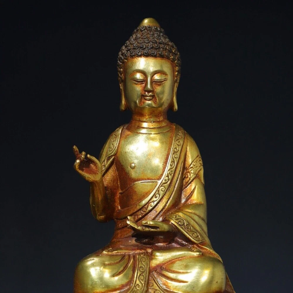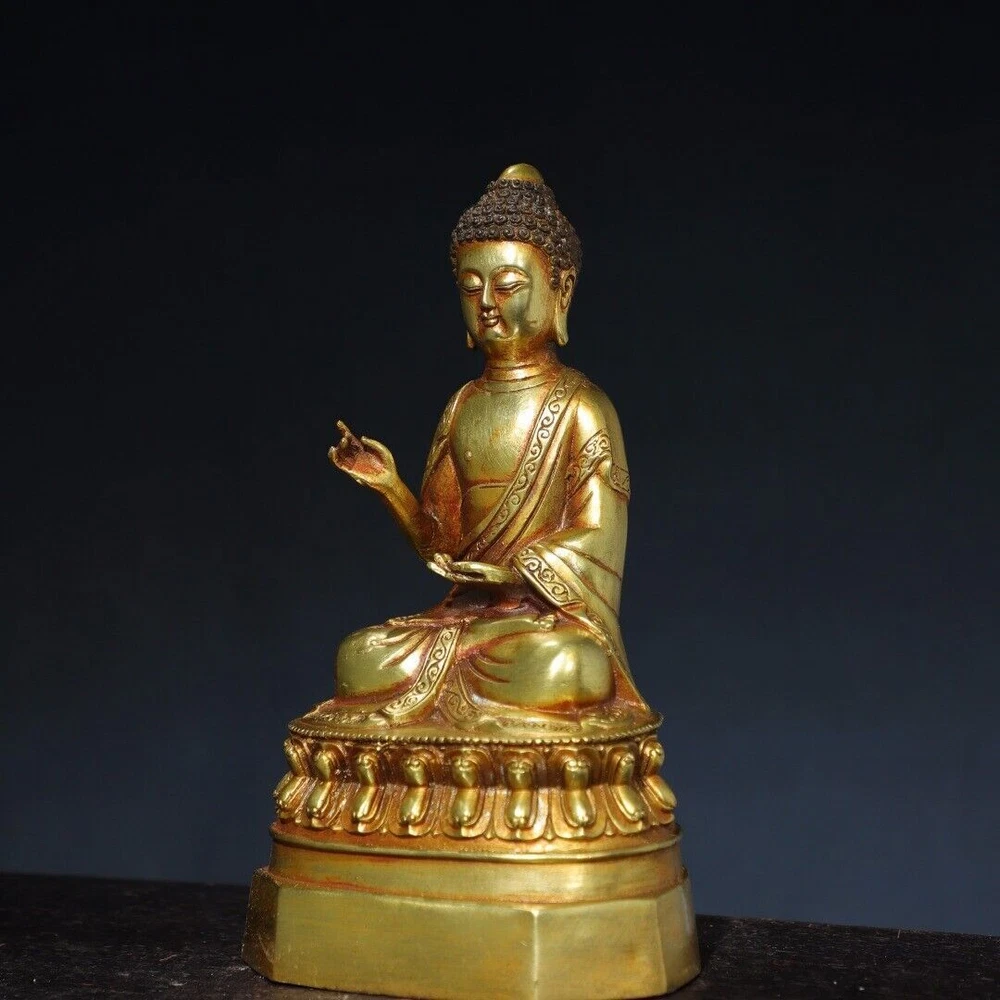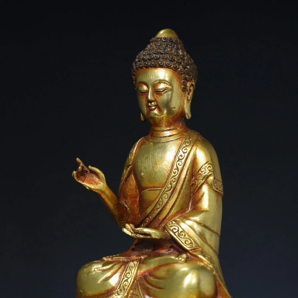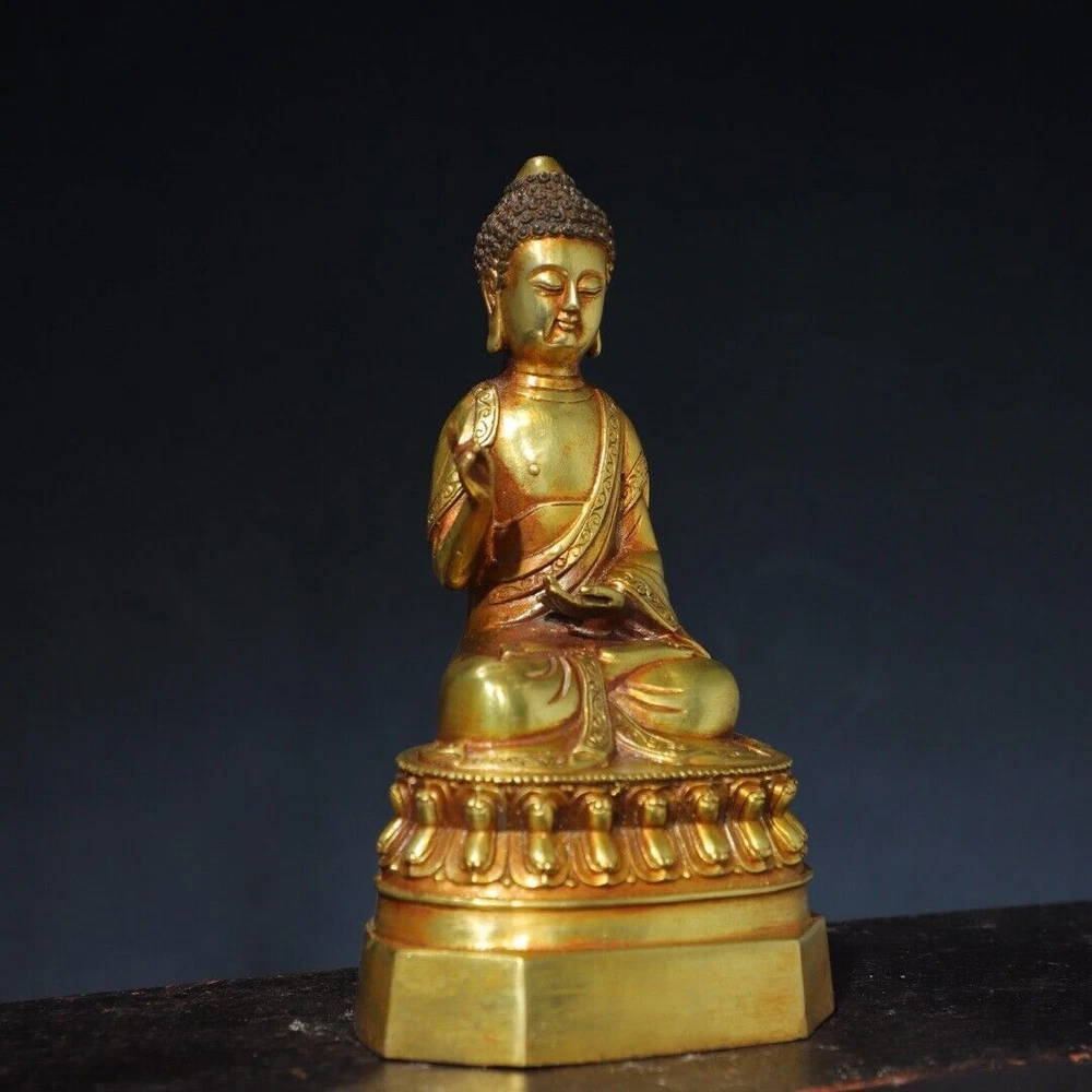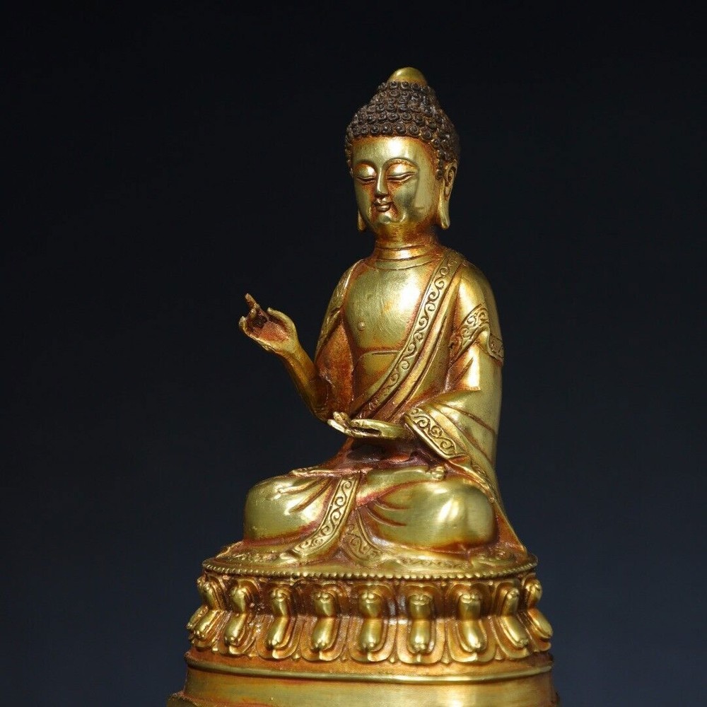 7.5 Antique Tibetan Buddhism Bronze Gilt Tathagata Buddha Statue