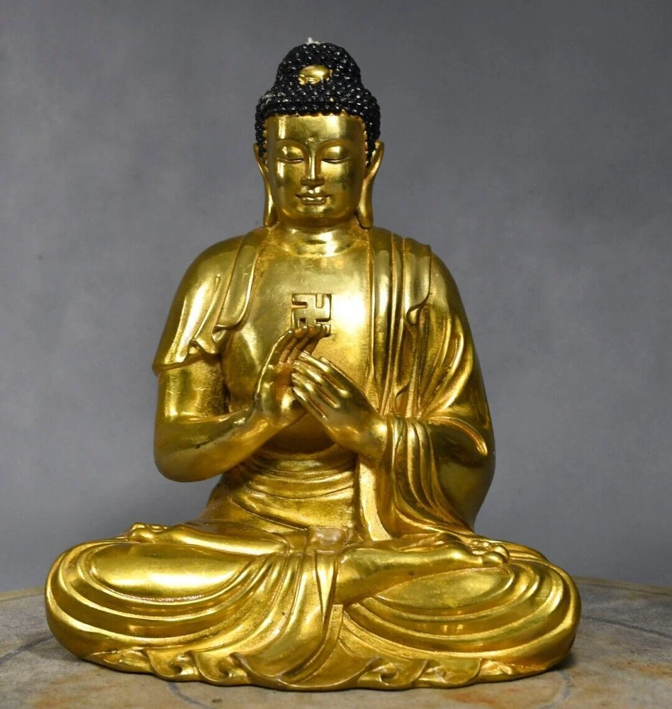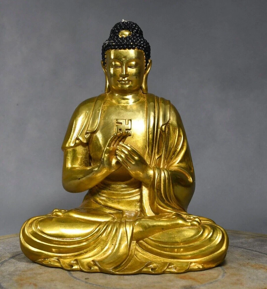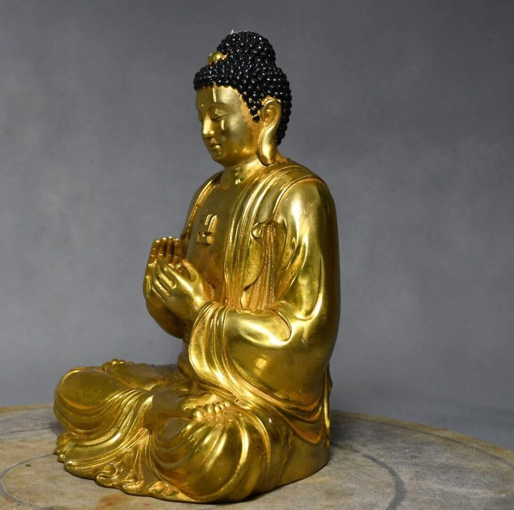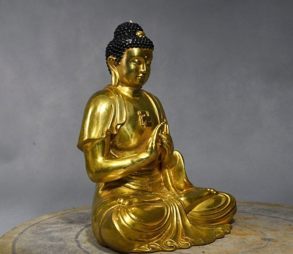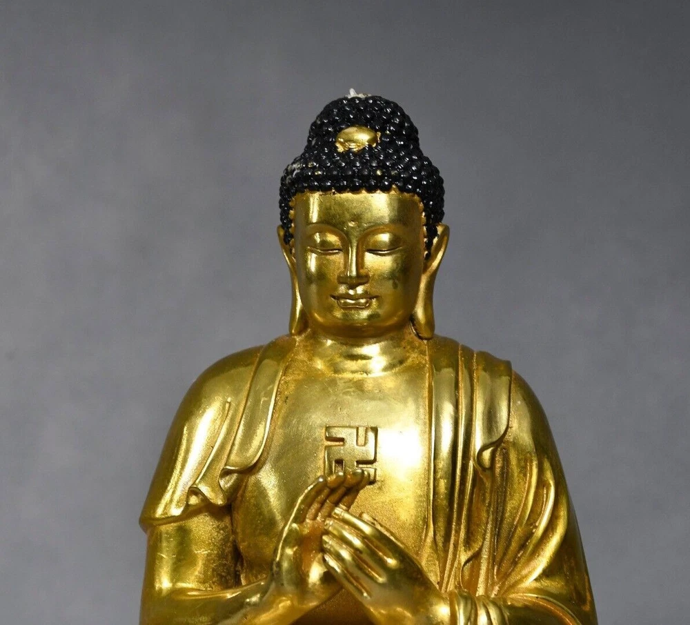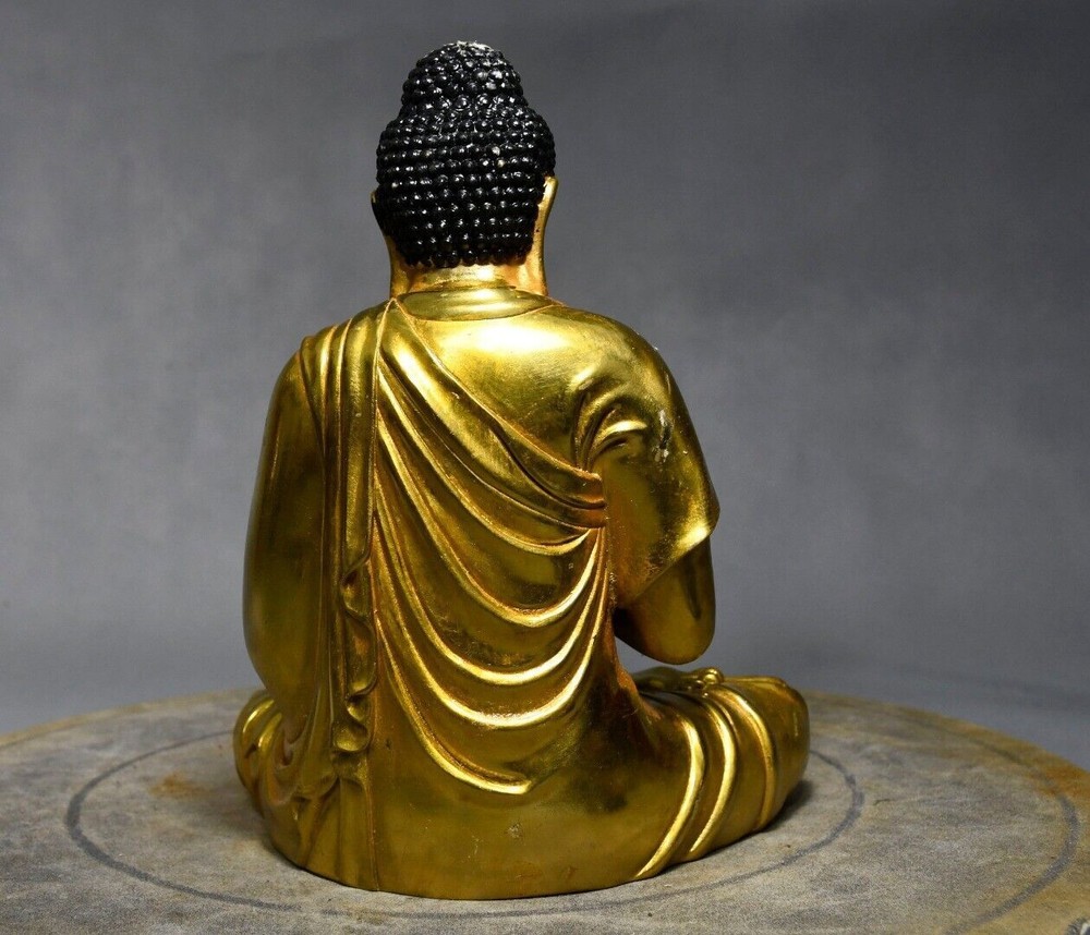 8.7" Antique Tibet Tibetan Buddhism temple Bronze gilt Shakyamuni Buddha statue