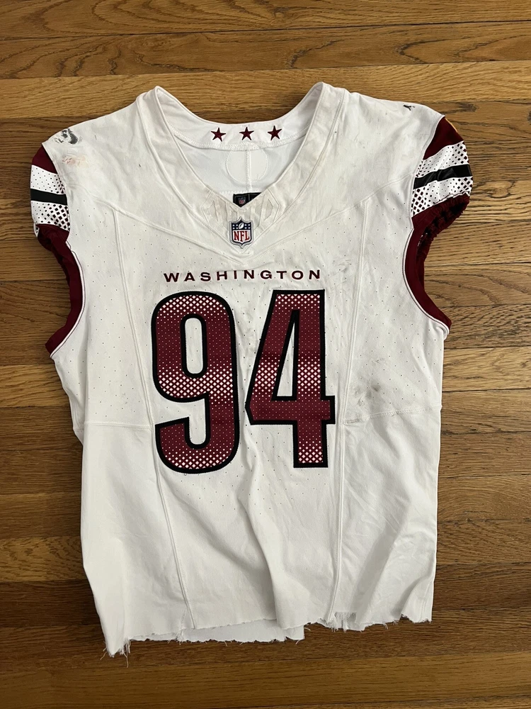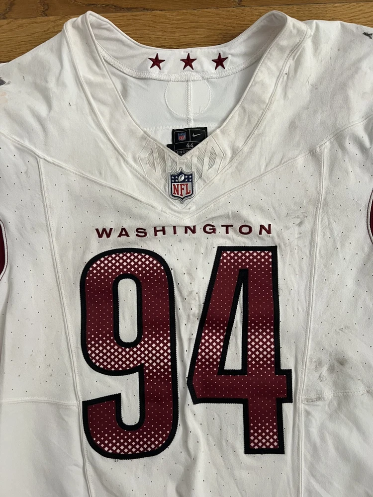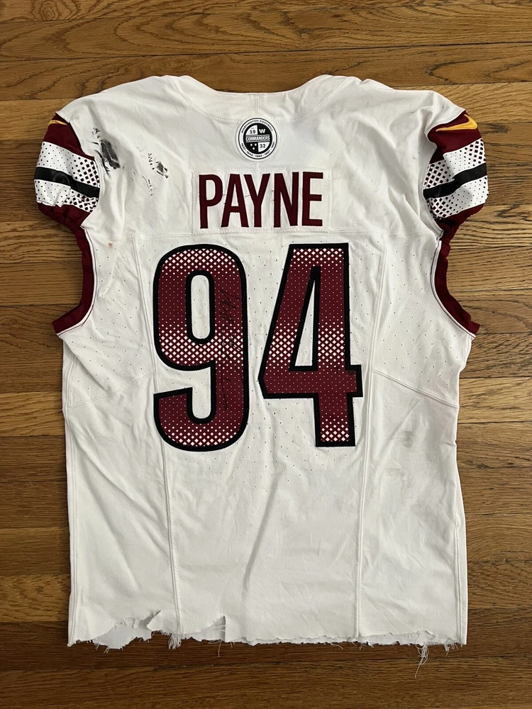 Game Used Daron Payne Washington Commanders Jersey Worn on 9/23/2024 vs The Bengals Unwashed and Signed You are bidding on just the jersey (no paperwork or COA comes with this jersey)