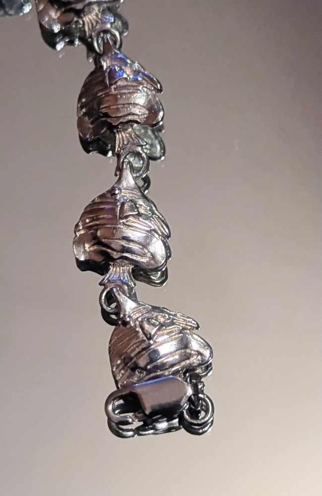 This bracelet is absolutely stunning! The linked fish design is so unique and beautifully crafted from high-quality sterling silver. It’s lightweight yet durable, and the perfect size for a comfortable fit. The sleek, elegant look makes it versatile—dress it up or keep it casual. Love how it adds a subtle ocean-inspired charm to any outfit. A must-have for silver jewelry lovers!
