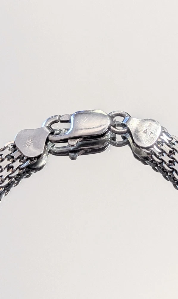 This bracelet is absolutely gorgeous! The sleek mesh design feels so elegant and high-quality—definitely looks way more expensive than it is. The sterling silver has a beautiful shine, and it’s so lightweight and comfortable. I love how versatile it is—dresses up my work outfits and adds a chic touch to casual looks. The Italian craftsmanship really shows, and the AT stamp confirms its authenticity. A must-have for anyone who loves timeless, understated jewelry!