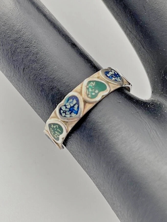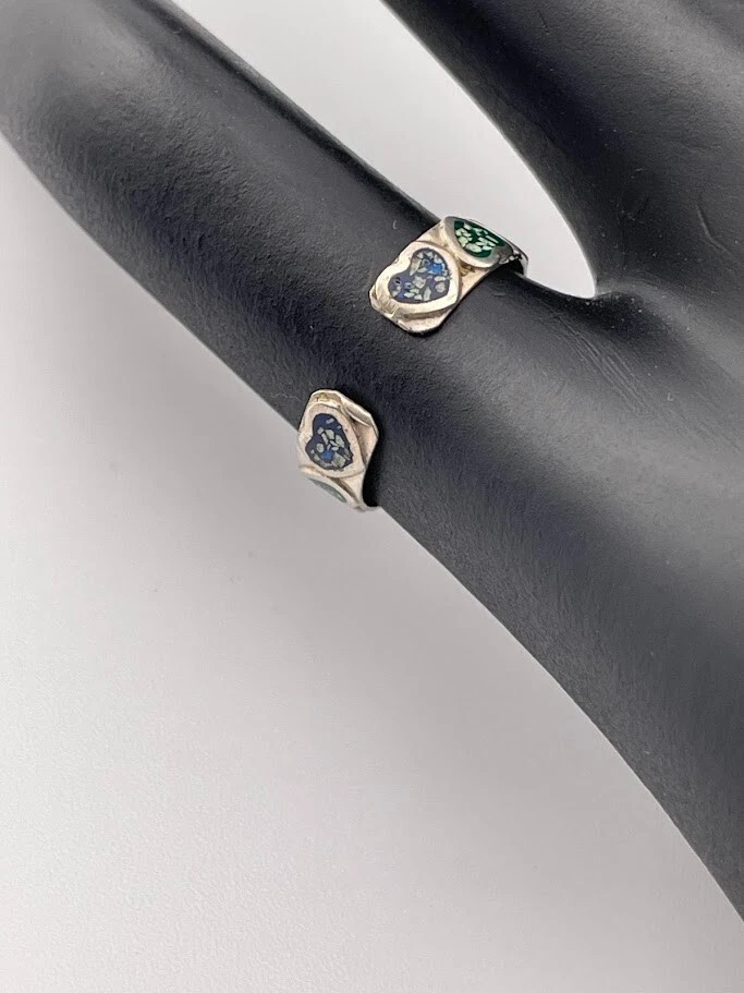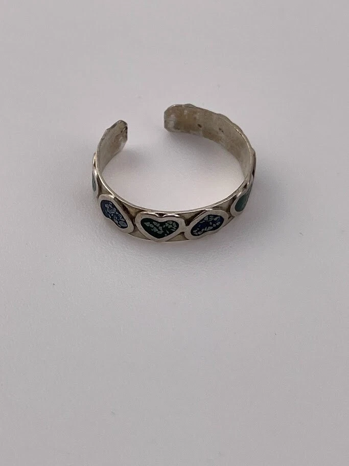 925 STERLING SILVER BLUE & GREEN ENAMEL HEARTS TOE RING SIZE 3 ADJUSTS 1904