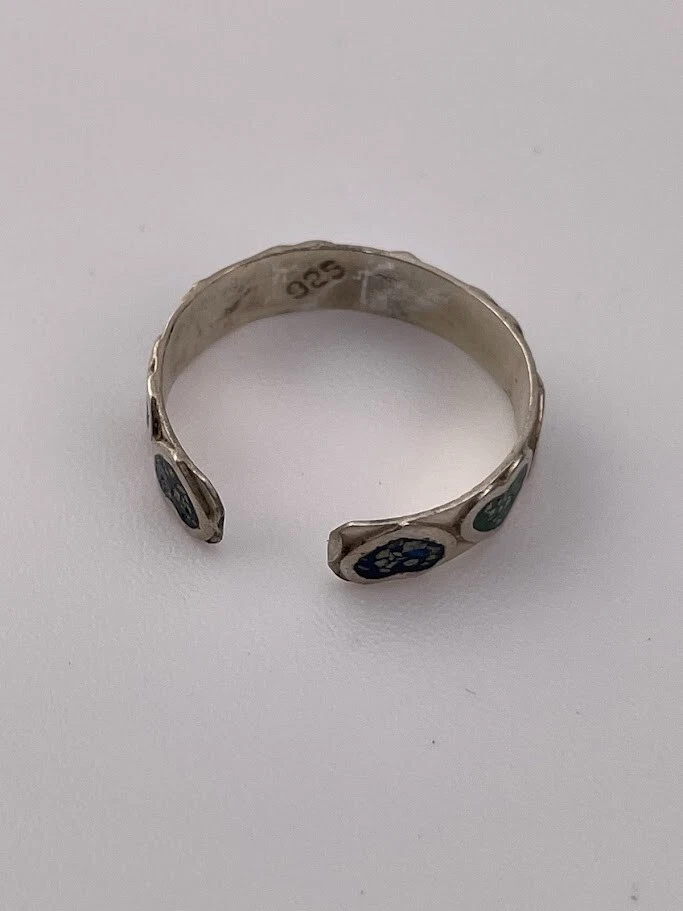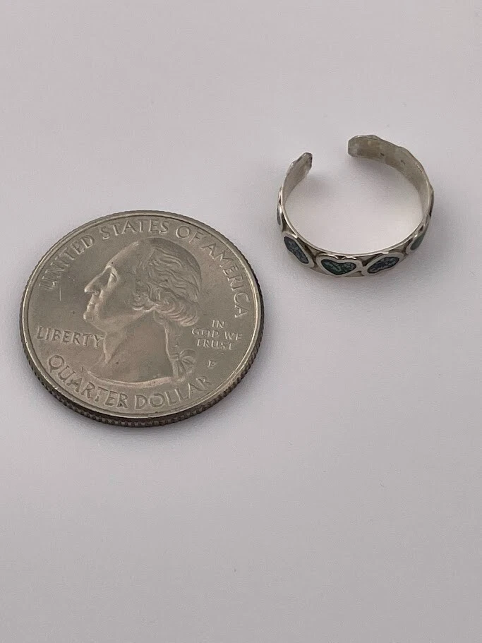 925 STERLING SILVER BLUE & GREEN ENAMEL HEARTS TOE RING SIZE 3 ADJUSTS 1904 FINGERTIP ****************************** Thank you for your interest in our jewelry. We?d like to introduce ourselves. We are just a retired couple who love matching our customers with great jewelry. We?re not professional jewelers. To have the best shopping experience we like to recommend the following: Please measure your hand, wrist, finger or neck to ensure the best fit. We can use your measurements to help with sizing. Please ask all the questions you want. We know some stuff and, if we don?t, we?ll do the research. We like to learn too. More Stuff: If an item is described as ?gold over 925 sterling silver? this means it is gold vermeil. Vermeil is the process by which a layer of gold (usually 14k or 18k) is bonded to sterling silver. We only clean with gentle soap and warm water to avoid damage. The items we sell may be new or pre-owned and may have normal wear, slight damage, and/or tarnish. We make every effort to ensure the items we sell are as described. This includes testing to confirm metal purity if the item isn?t marked, and testing for gemstone identity. We try to put measurements in the jewelry description and include a photo of each piece with a U.S. quarter (25mm).