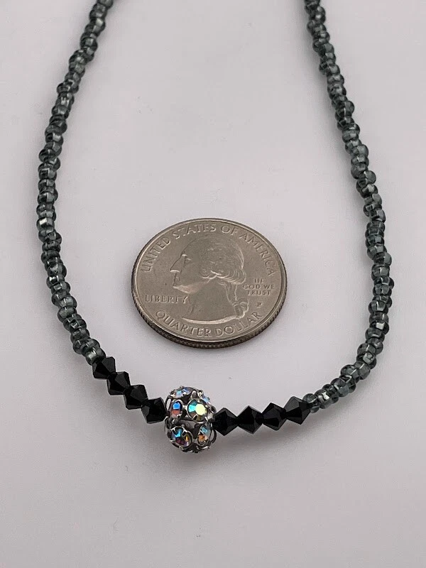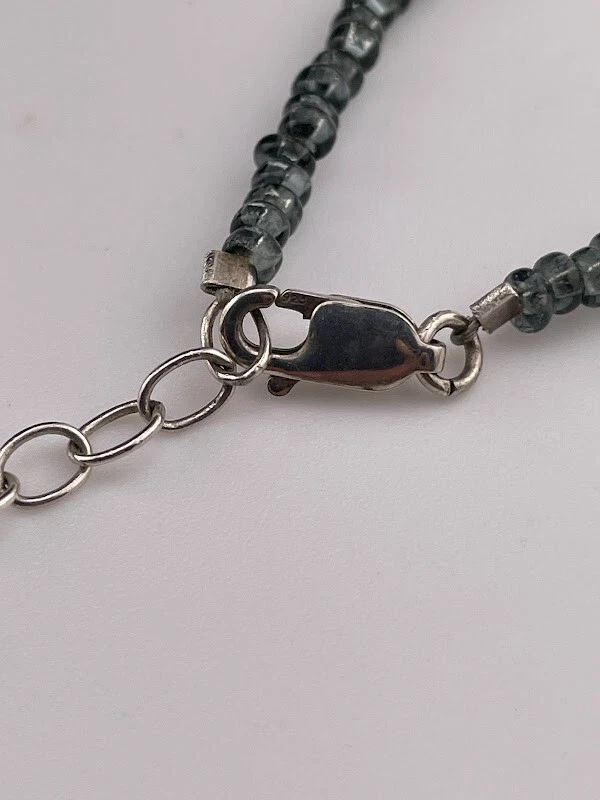 925 STERLING SILVER CRYSTAL BEAD BLUE BLACK NECKLACE 14-18" VICTORIAN STYLE 755 ****************************** Thank you for your interest in our jewelry. We?d like to introduce ourselves. We are just a retired couple who love matching our customers with great jewelry. We?re not professional jewelers. To have the best shopping experience we like to recommend the following: Please measure your hand, wrist, finger or neck to ensure the best fit. We can use your measurements to help with sizing. Please ask all the questions you want. We know some stuff and, if we don?t, we?ll do the research. We like to learn too. More Stuff: If an item is described as ?gold over 925 sterling silver? this means it is gold vermeil. Vermeil is the process by which a layer of gold (usually 14k or 18k) is bonded to sterling silver. We only clean with gentle soap and warm water to avoid damage. The items we sell may be new or pre-owned and may have normal wear, slight damage, and/or tarnish. We make every effort to ensure the items we sell are as described. This includes testing to confirm metal purity if the item isn?t marked, and testing for gemstone identity. We try to put measurements in the jewelry description and include a photo of each piece with a U.S. quarter (25mm).