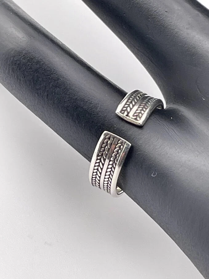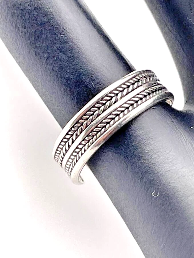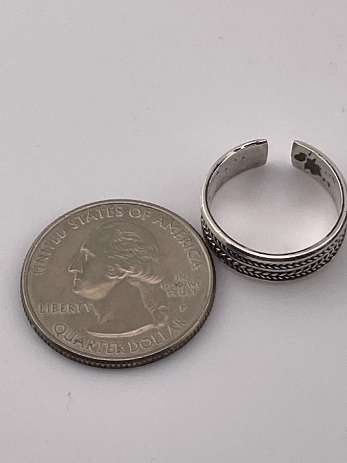 925 STERLING SILVER DOUBLE BRAID BAND RING SIZE 6 ADJUSTS PINKY TOE THUMB 2855 ****************************** Thank you for your interest in our jewelry. We?d like to introduce ourselves. We are just a retired couple who love matching our customers with great jewelry. We?re not professional jewelers. To have the best shopping experience we like to recommend the following: Please measure your hand, wrist, finger or neck to ensure the best fit. We can use your measurements to help with sizing. Please ask all the questions you want. We know some stuff and, if we don?t, we?ll do the research. We like to learn too. More Stuff: If an item is described as ?gold over 925 sterling silver? this means it is gold vermeil. Vermeil is the process by which a layer of gold (usually 14k or 18k) is bonded to sterling silver. We only clean with gentle soap and warm water to avoid damage. The items we sell may be new or pre-owned and may have normal wear, slight damage, and/or tarnish. We make every effort to ensure the items we sell are as described. This includes testing to confirm metal purity if the item isn?t marked, and testing for gemstone identity. We try to put measurements in the jewelry description and include a photo of each piece with a U.S. quarter (25mm).