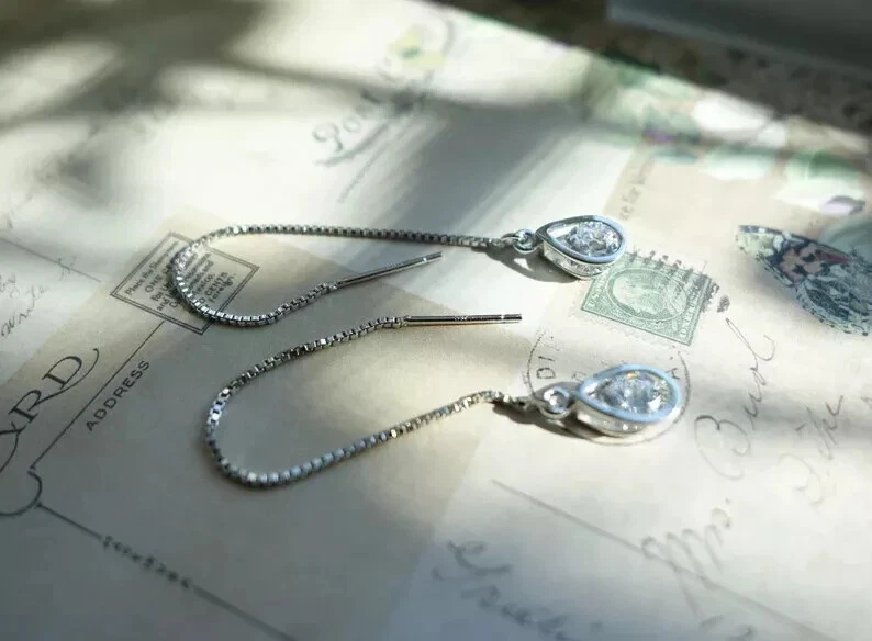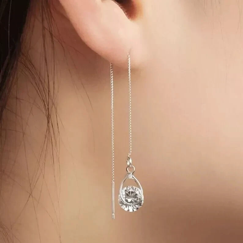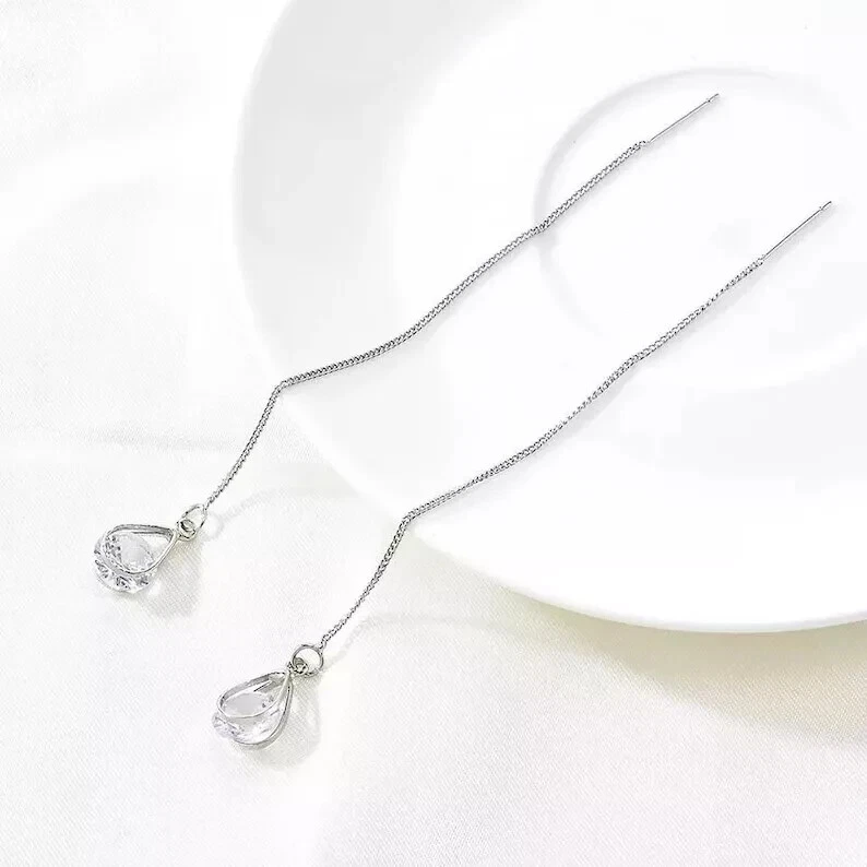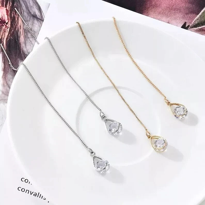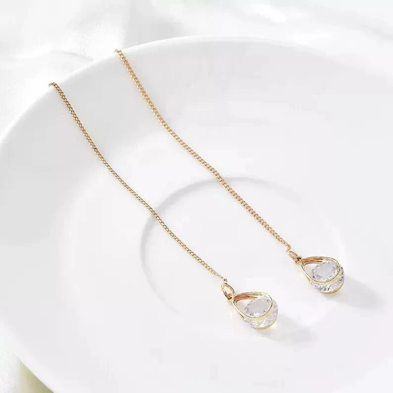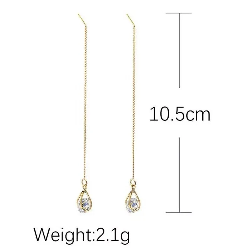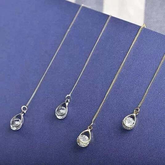 Product details 1 Pair Earrings Lead Free Long Chain Teardrop Shape Rhinestone Inlaid Ear Line for Party Description: This earrings of shiny rhinestone inlaid are outstanding and charming. The long line and teardrop design earrings can make your face look slimmer. The earrings are made of alloy, it is very durable. The length of the earrings is 10.5cm. It is suitable for party, daily, office and gift. Item Name: Earrings Material:Alloy Size: Silver: 7.25cmx6.85cmx0.5cm/2.85inx2.7inx0.2in Golden: 6.95cmx6.8cmx0.5cm/2.74inx2.68inx0.2in Notes: Due to the light and screen setting difference, the items color may be slightly different from the pictures. Please allow slight dimension difference due to different manual measurement. Package Includes:1 Pair Earrings 1 Pair Earrings Lead Free Long Chain Teardrop Shape Rhinestone Inlaid Ear Line for Party