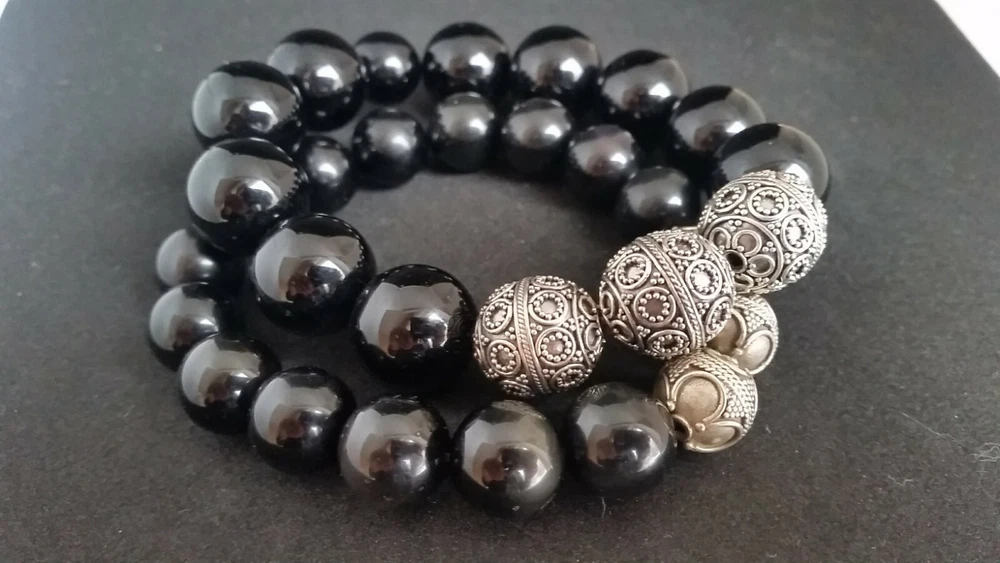 Style: Buddha Beads Type: Bracelet Brand: Handmade lot: LOT OF TWO Metal: Sterling Silver Main Stone: Obsidian Metal Purity: 925 parts per 1000