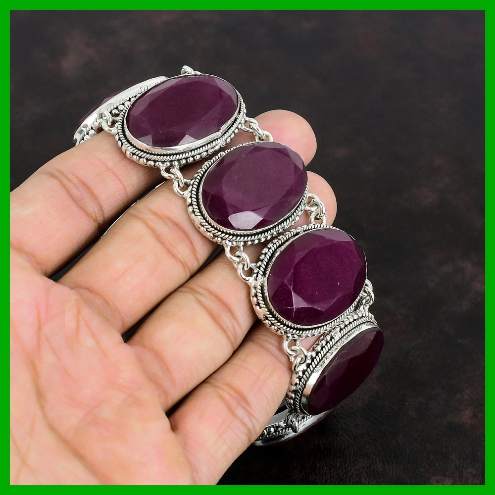 Note: Natural gemstones can vary slightly in design and color due to their unique formation. Welcome to KrishnaJewels123 Explore Our Handmade Sterling Silver Jewelry Collection Product Details: SKU: KKB-1372 Gemstone: Kashmir Rubi Stone Shape: Oval Metal Purity: 925 Sterling Silver Length: 9 Inches $ Width: Inches $ Sterling silver has long been cherished for its sophisticated charm and enduring quality. Valued for its elegance and versatility, sterling silver is a staple in jewelry design, offering a perfect balance of beauty and durability. Our sterling silver jewelry combines timeless appeal with modern craftsmanship. Known for its hypoallergenic qualities and resistance to tarnish, sterling silver enhances the natural brilliance of gemstones, creating a stunning, refined look. Ideal For: Mother’s Day Father’s Day Promises Valentine’s Day Halloween Celebrations Christmas Gifts New Year Festivities Gifts for Mom Gifts for Her Need more details or personalized advice? Don’t hesitate to reach out! We’re here to assist you promptly. Each piece at KrishnaJewels123 is handcrafted with care and passion. As experts in creating exquisite sterling silver jewelry, we take pride in our meticulous craftsmanship. Our collection features a diverse range of designs, each enhanced by genuine gemstones and created by our skilled artisans. Thank you for visiting KrishnaJewels123. We hope you find joy in exploring our collection and enjoy your shopping experience with us!