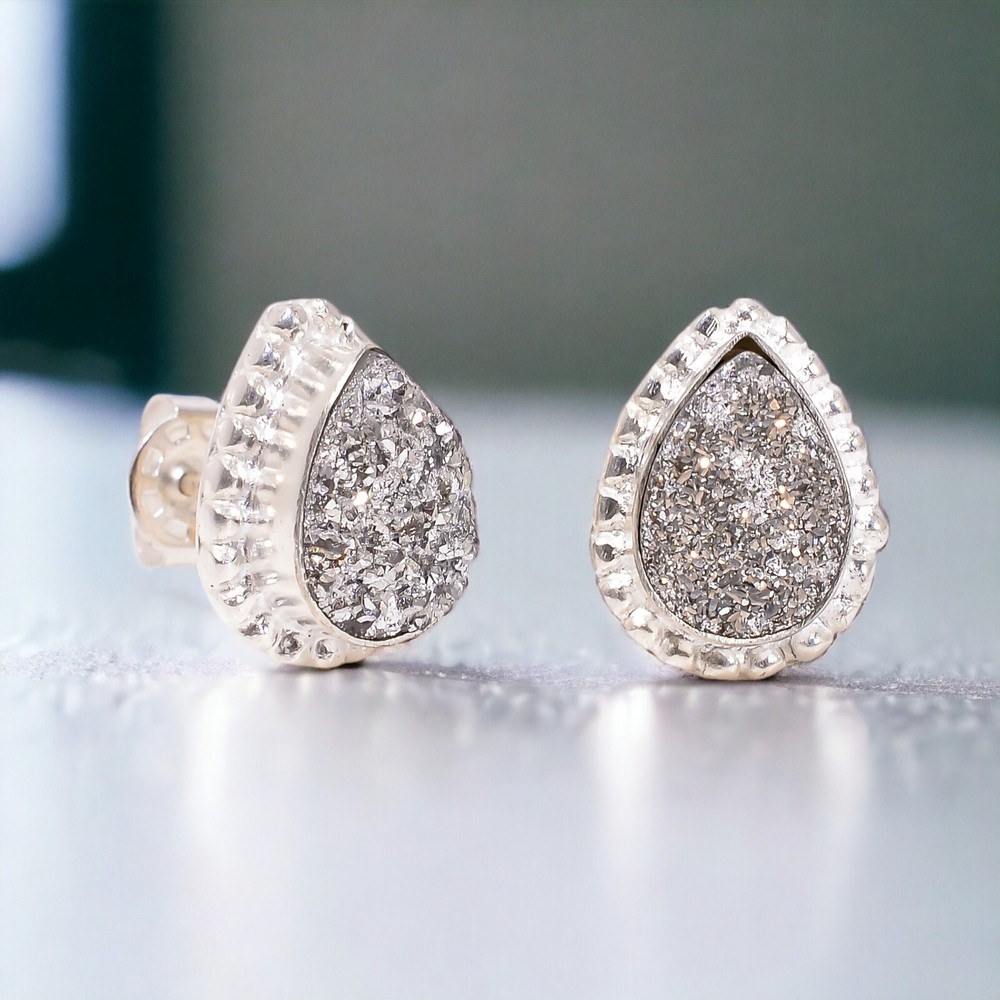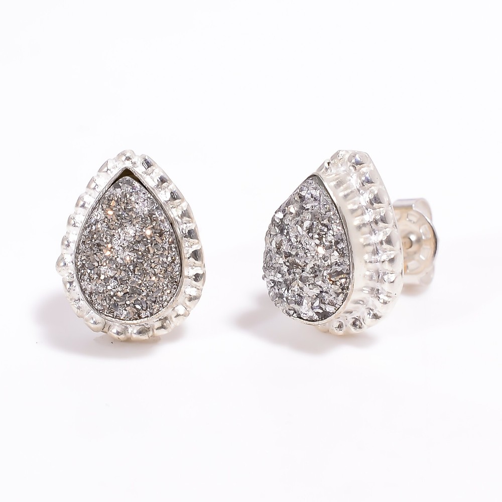 Welcome to Jaipur Silver Gallery Wedding Gift For Her 925 Silver Natural Titanium Druzy Stud Dainty Earrings Handmade Earrings, Sterling Silver Earrings, Titanium Druzy Earrings, Handcrafted Earrings SKU : - UKE-2149 Gemstone : - Titanium Druzy Stone Shape : - Pear Metal : - Sterling Silver Metal Purity : - 925 Earring Length : 0.5 Inches Earring Width : Inches _______________________________________________________________________________________ Amazing Properties of Silver ****************************** Tough and Long-lasting: Silver is incredibly strong, built to withstand daily wear and tear as well as tough environmental conditions. Easy to Shape and Design: Silver is like clay for skilled craftsmen, allowing them to create beautiful and intricate designs effortlessly. Great at Conducting Energy: When it comes to heat and electricity, silver is the go-to. It can quickly and efficiently transfer energy, making it ideal for various applications. Keeps Things Clean and Safe: Silver has a natural ability to keep harmful bacteria at bay, making it a reliable choice for promoting cleanliness and well-being. 3 Underrated Benefits Of Silver ****************************** Gorgeous Charm: Silver jewelry shines brightly, enhancing any outfit and fitting everyone's style with ease. Gentle on Skin: Silver is kind to your skin, reducing the chance of allergies and making it a favorite choice for accessories. Healing Vibes: Some believe silver jewelry has a soothing touch, possibly aiding in easing issues like arthritis, anxiety, and the blues. _______________________________________________________________________________________ For Mother's Day Gift For Father's Day Gift For Promise For Valentine' Day For Halloween Party For Christmas Day Gift For New Year Party For Mom For Her _______________________________________________________________________________________ If you need more help or want design tips, just give us a shout! We're lightning-fast in getting back to you. Every single thing we create is made by hand in our special workshop, and we put a whole lot of love and care into every piece. Thank you for stopping by! We're confident you'll have an amazing time shopping with us. We're here to make sure every moment you spend with us is filled with delight and satisfaction. Happy shopping!