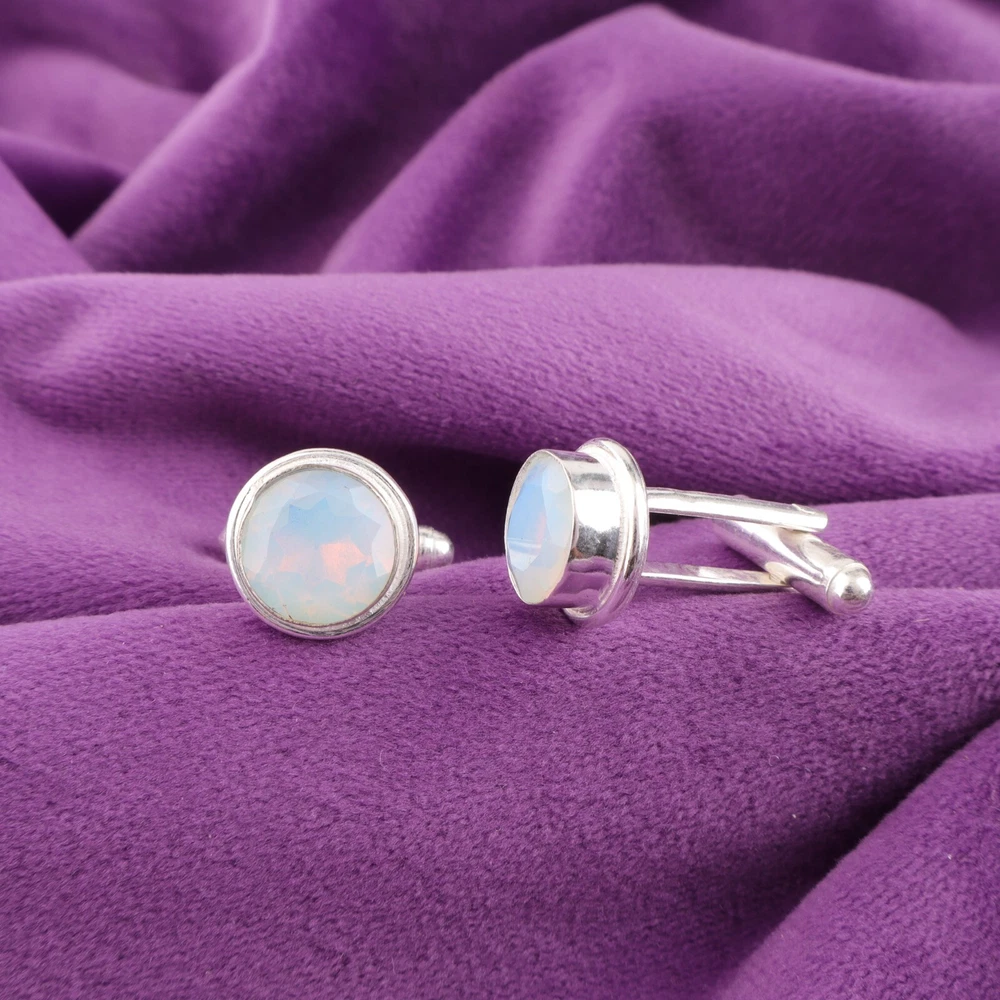 925 Silver October Birth Natural Milky Opal White Designer Anniversary Cufflinks