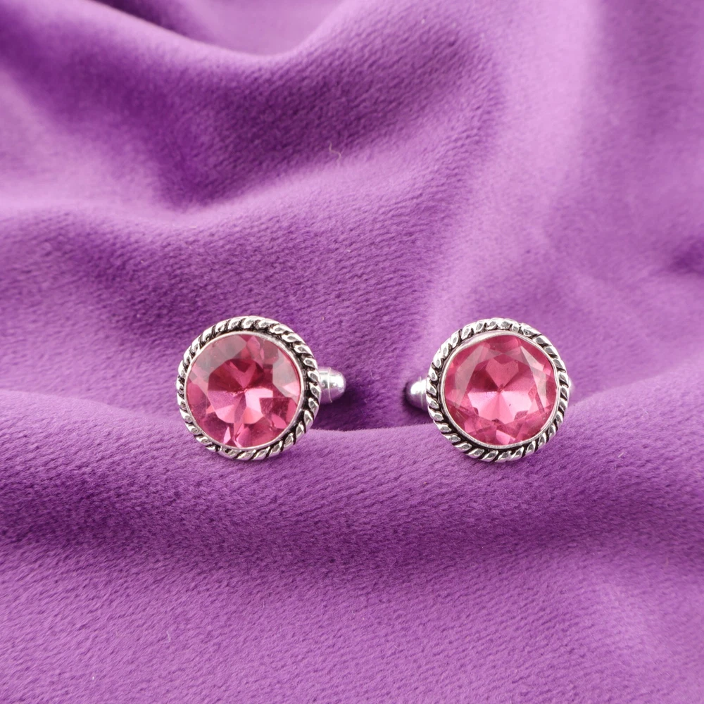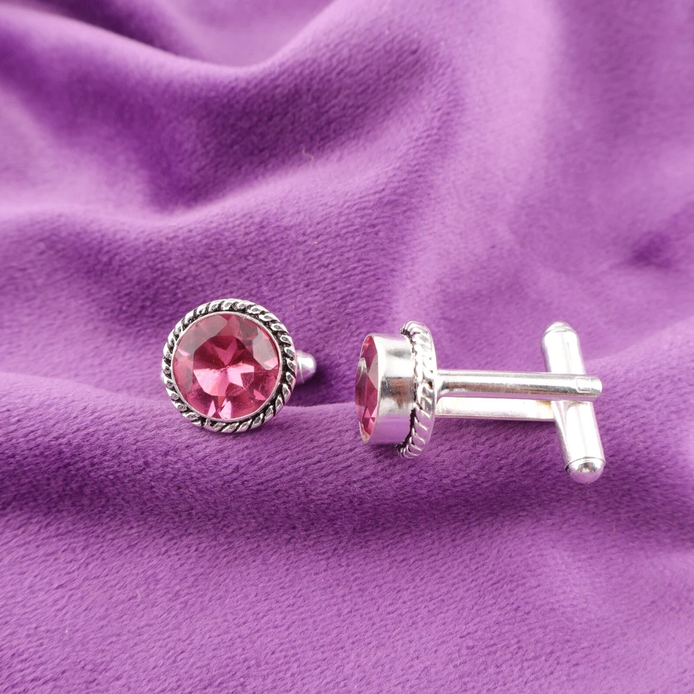 925 Silver Pink Tourmaline Stone Anniversary Business Formal Cufflinks Jewelry
