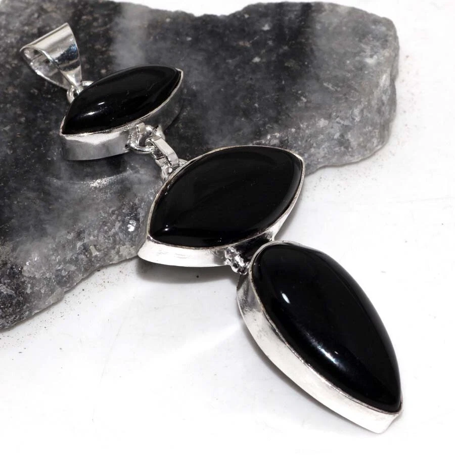 925 Silver Plated Black Onyx Jewellery Pendant Gemstone Handmade Size 3" JW