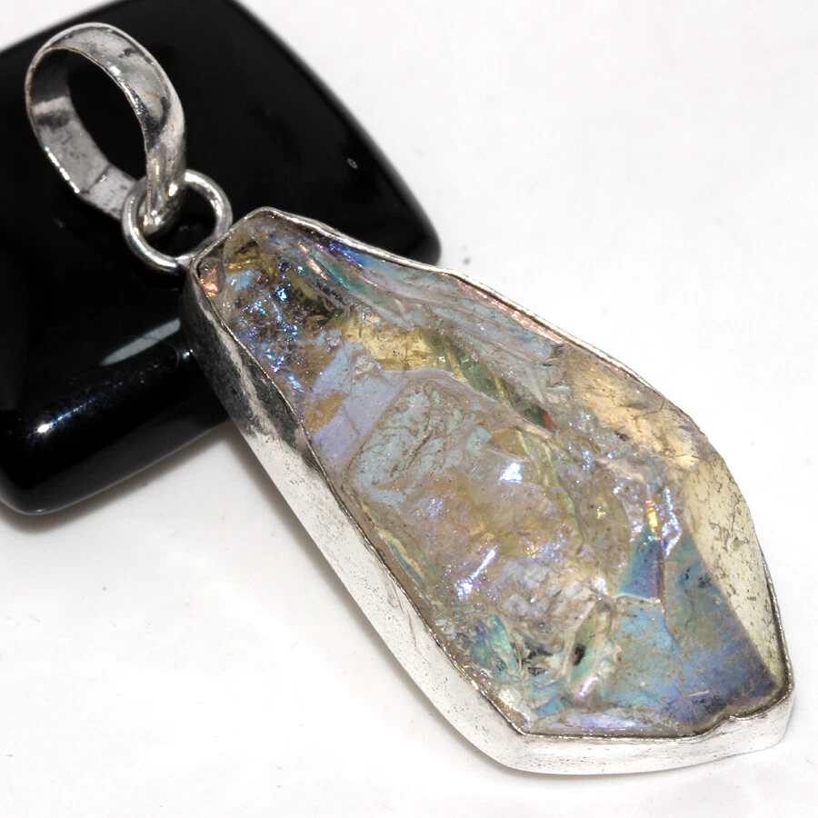 925 Silver Plated Crystal Titanium Aura Quartz Pendant Jewelry Size 2" JW