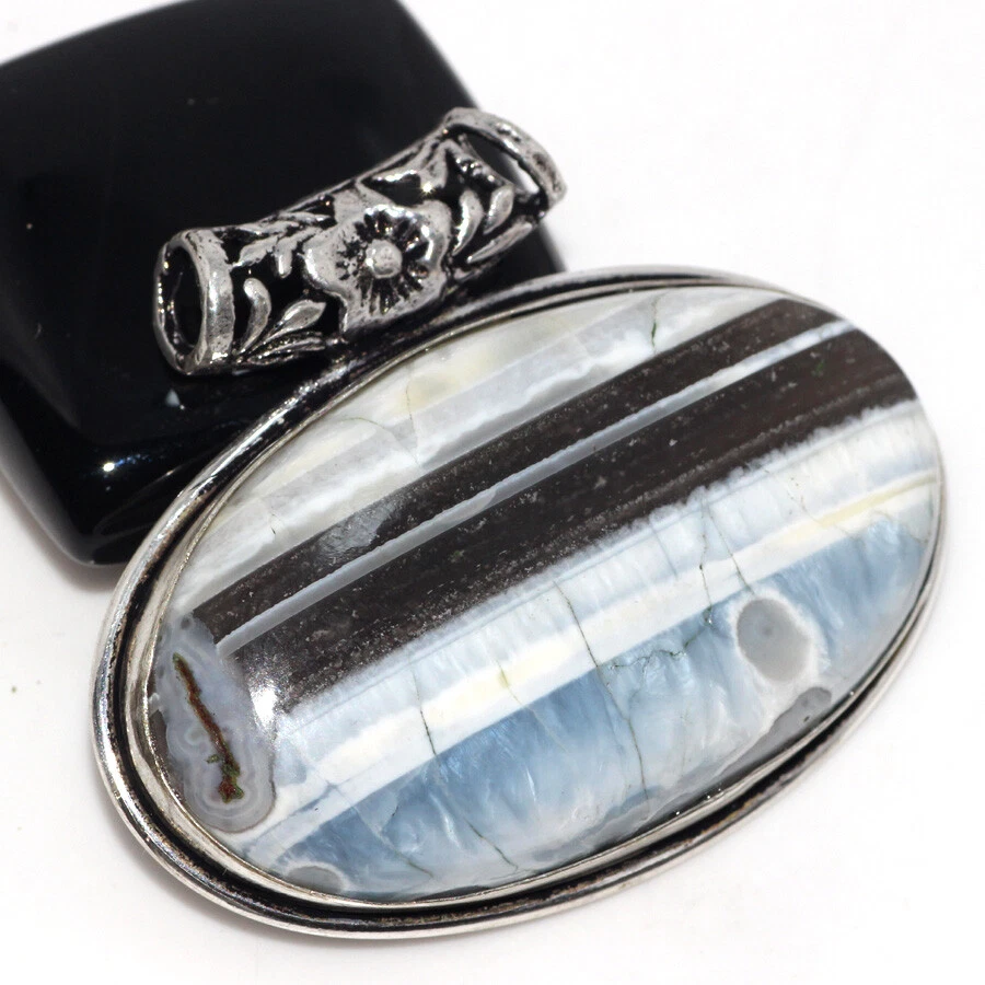 925 Silver Plated Owhyee Blue Opal Ethnic Chunky Pendant Jewelry Size 1.5" JW