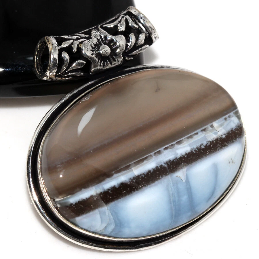 925 Silver Plated Owhyee Blue Opal Ethnic Chunky Pendant Jewelry Size 1.5" JW