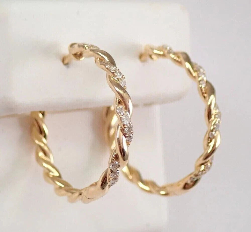 925 Silver Simulated Diamond Twisted Fancy Hoop Earring 14K Yellow Gold Plated