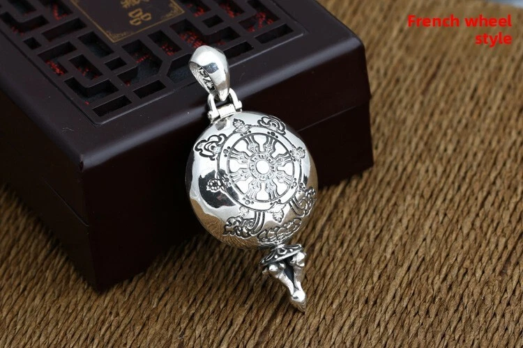 S92 5 Sterling Silver Tibetan Ghau Box / Prayer Locket Pendant - Choose Your Auspicious Symbol Substantial & Intricately Detailed Amulet Holders - Average Weight 22 Grams! (Pendant Only) Carry your sacred prayers, relics, or personal keepsakes in profound style with one of these exceptional Tibetan Ghau Box (Prayer Locket) Pendants . Each pendant is masterfully crafted from solid S925 Sterling Silver and features a unique, deeply embossed auspicious Tibetan Buddhist symbol on its front. These substantial lockets open to reveal a space for your treasured items, serving as a powerful personal amulet. The "Thai Silver" style oxidized finish beautifully highlights the intricate details of each design. Choose Your Sacred Symbol (Subject to Availability - Please See Photos): Endless Knot (Shrivatsa) Lotus Flower / Chrysanthemum Kalachakra Symbol (Tenfold Powerful Ones) Double Fish (Ashtamangala) Dharma Wheel (Dharmachakra) Designs incorporating Vajra / Dorje elements Other traditional auspicious Tibetan motifs (Please select your desired design from the available options when ordering. Each pendant is sold individually.) **PLEASE NOTE: This listing is for ONE PENDANT ONLY, with your choice of design. The chain shown in photos is for illustrative purposes and is NOT included.** Key Features & Purposeful Design: ✓ Authentic Ghau Box / Prayer Locket: Traditional Tibetan amulet holder that opens to contain sacred items. ✓ Solid S925 Sterling Silver: Ensures durability and a lasting, beautiful shine. ✓ Variety of Embossed Auspicious Symbols: Choose the design that resonates most with you from a selection of powerful Tibetan motifs. ✓ Very Substantial Average Weight: Each pendant weighs approximately 22 grams , indicating very solid and high-quality construction. ✓ "Thai Silver" Style Oxidized Details: Enhances the depth and intricacy of the embossed symbolic artwork. ✓ Secure Closure: Designed to keep your sacred items safe within. ✓ Decorative Bottom Element: Many designs feature an ornate pointed finial, some resembling a half-Dorje/Vajra. Specifications (Approximate Average per Pendant): Product Type: Ghau Box / Prayer Locket Pendant (Chain NOT included - Sold Individually by Design) Material: S925 Sterling Silver (Pure Silver) Approx. Overall Height (including bail & bottom element): 56 mm / 2.20 inches Approx. Locket Diameter: 28 mm / 1.10 inches Approx. Locket Thickness: 16 mm / 0.63 inches Average Weight: 22 grams / 0.78 ounces A Personal Vessel for Blessings and Protection: These S925 Sterling Silver Ghau Boxes are more than just beautiful pendants; they are personal sanctuaries for items that hold deep spiritual meaning. Choose the symbol that speaks to your heart and carry its blessings with you. They make exceptional gifts for practitioners or anyone who appreciates the profound artistry and symbolism of Tibetan culture. Important Notes: This listing is for ONE PENDANT (Ghau Box) ONLY , with your choice of embossed design. No chain is included. All measurements (dimensions and weight) are approximate, with weight being an average across the designs. Please allow for slight variations due to manual crafting. The actual color and oxidized finish may vary slightly due to lighting conditions during photography and individual monitor settings. Please review all provided images carefully to see the different designs available and select your preferred symbol. Thank you for viewing! Feel free to ask any questions before purchasing your chosen Tibetan Ghau box pendant. On Jul 18, 2025 at 19:00:53 PDT, seller added the following information: