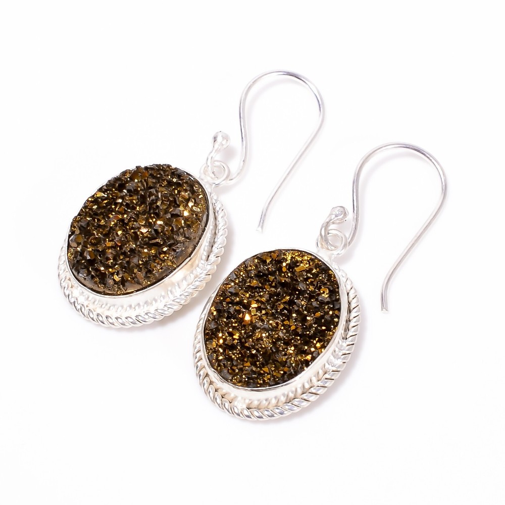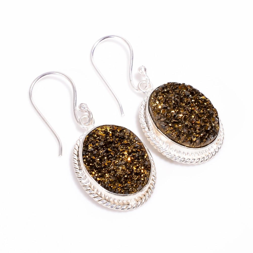 Welcome to Jaipur Silver Gallery Gift For Women Drop/Dangle Dailywear Earrings 925 Silver Natural Titanium Druzy Handmade Earrings, Sterling Silver Earrings, Titanium Druzy Earrings, Handcrafted Earrings SKU : - UKE-1971 Gemstone : - Titanium Druzy Stone Shape : - Oval Metal : - Sterling Silver Metal Purity : - 925 Earring Length : 1.5 Inches Earring Width : Inches _______________________________________________________________________________________ Amazing Properties of Silver ****************************** Tough and Long-lasting: Silver is incredibly strong, built to withstand daily wear and tear as well as tough environmental conditions. Easy to Shape and Design: Silver is like clay for skilled craftsmen, allowing them to create beautiful and intricate designs effortlessly. Great at Conducting Energy: When it comes to heat and electricity, silver is the go-to. It can quickly and efficiently transfer energy, making it ideal for various applications. Keeps Things Clean and Safe: Silver has a natural ability to keep harmful bacteria at bay, making it a reliable choice for promoting cleanliness and well-being. 3 Underrated Benefits Of Silver ****************************** Gorgeous Charm: Silver jewelry shines brightly, enhancing any outfit and fitting everyone's style with ease. Gentle on Skin: Silver is kind to your skin, reducing the chance of allergies and making it a favorite choice for accessories. Healing Vibes: Some believe silver jewelry has a soothing touch, possibly aiding in easing issues like arthritis, anxiety, and the blues. _______________________________________________________________________________________ For Mother's Day Gift For Father's Day Gift For Promise For Valentine' Day For Halloween Party For Christmas Day Gift For New Year Party For Mom For Her _______________________________________________________________________________________ If you need more help or want design tips, just give us a shout! We're lightning-fast in getting back to you. Every single thing we create is made by hand in our special workshop, and we put a whole lot of love and care into every piece. Thank you for stopping by! We're confident you'll have an amazing time shopping with us. We're here to make sure every moment you spend with us is filled with delight and satisfaction. Happy shopping!