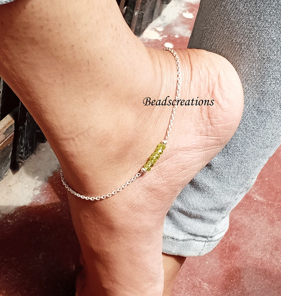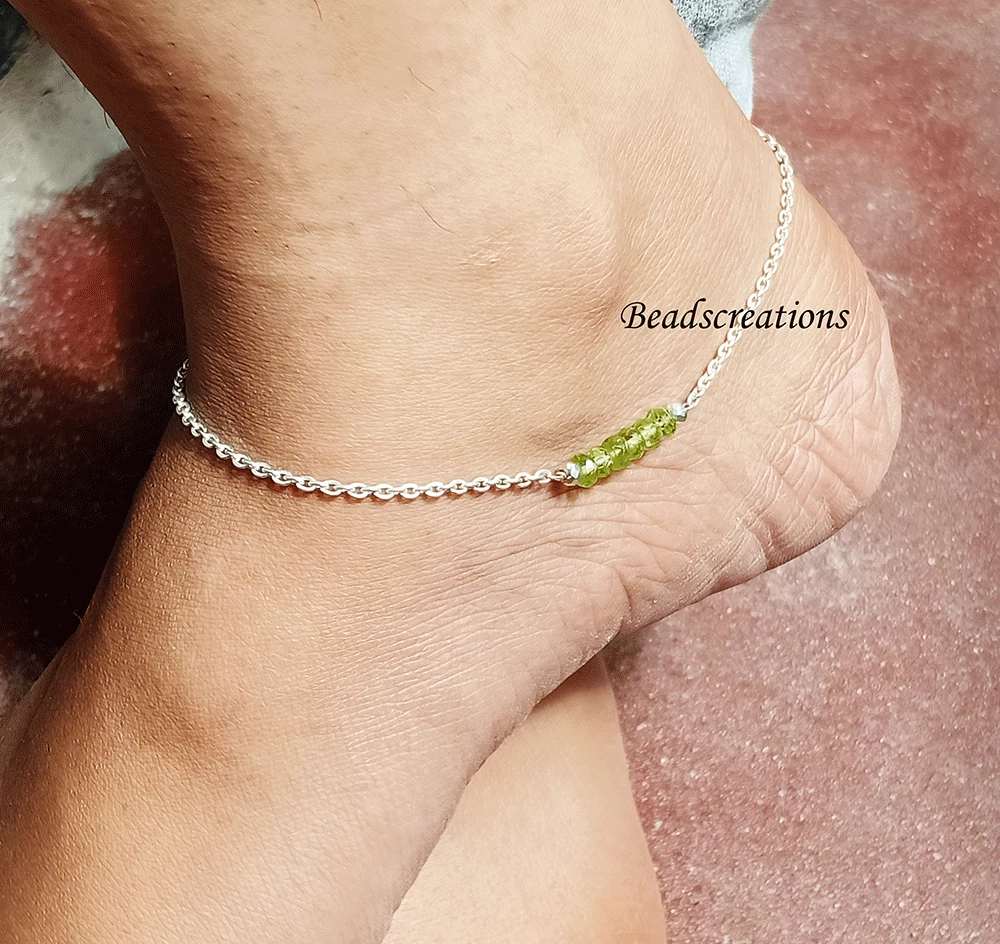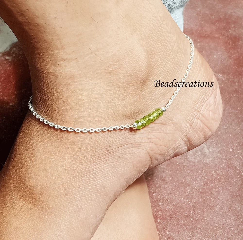 925 Sterling Natural Faceted Beads Peridot Gemstone Chain Anklet Christmas Sale Style : Anklet Stone : Peridot Metal : 925 Sterling Silver Beads Size : 3mm - 4mm Beads Shape : Rondelled (Faceted) Hole Size : 0.60 mm Approx