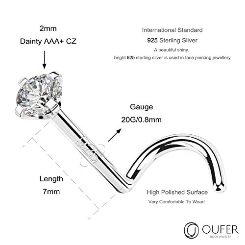 Return Policy Fast Delivery Trusted seller 925 Sterling Silver Nose Stud, Bone L Screw Shaped Nose Rings, 20G Nostril Solid 2mm Round CZ Nose Piercing Jewelry for Women Men Product Description [Classical Silver Nose Stud] - 1PC Solid Sterling Silver Nose Ring with Small Shiny CZ, You Can Wear It Everyday, It’s Comfortable and Looks Stunning. [Silver Nose Rings Size] - Bar Thickness(Gauge): 20G/0.8mm, AAA+ Cubic Zircon: 2mm. A Standard Nose Ring Size. [Safe Material] - 925 Silver Is Considered a Precious Metal, It Has a Beautiful Shiny Finish Which Is Easy To Polish, It's Also a Good Choice As a Gift. It Is One Of The Highest Quality Metals You Can Put In Your Body With Very Few Allergens And a Metal Purity That Makes It Perfect For Everyone. Nickel & Lead free & Hypoallergenic, Healthy For Sensitive Skin. [Fashion Design] - This Subtle But Stylish Nose Ring Features a 2mm Top End For a Look That's Fashionable But Not Over The Top. It Is Designed For Nostril Piercing And Has a Curving Design That Makes For Comfortable Wear And Easy Insertion. Comfortable and Quality - It's Everything You Could Want For Your Nostril Piercing In One Package! [Perfect After-Sales Service] - Highly Specialized Body Jewelry. Production / Designing / Creating.If You Have any Questions Please Feel Free to Get in Touch with us and We'll Handle them Immediately thus Providing you with Satisfactory Services. Shipping Returns Payment Shipping Shipping is FREE to all addresses other than APO/PO boxes in the lower 48 states. All our stock ships from US-based warehouses. Shipped via USPS or UPS (depending on location and package weight) Unless stated otherwise, all orders will ship within 24-72 hours of your payment being processed. Check our feedback to see the great reviews of FAST shipping we offer. Returns Seller does not accept returns Payment We currently accept payment via eBay managed payments only. Once payment is cleared, we will dispatch your shipment within 1-3 business days. Please refer to the "Shipping" tab for more information regarding shipping speed to your destination.