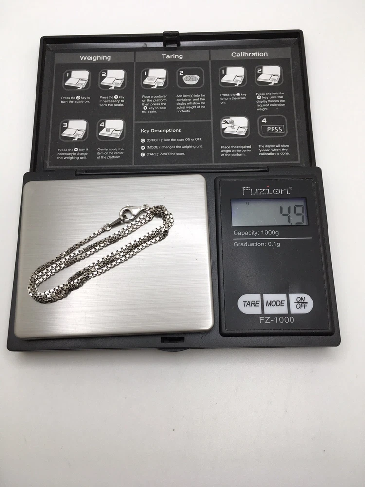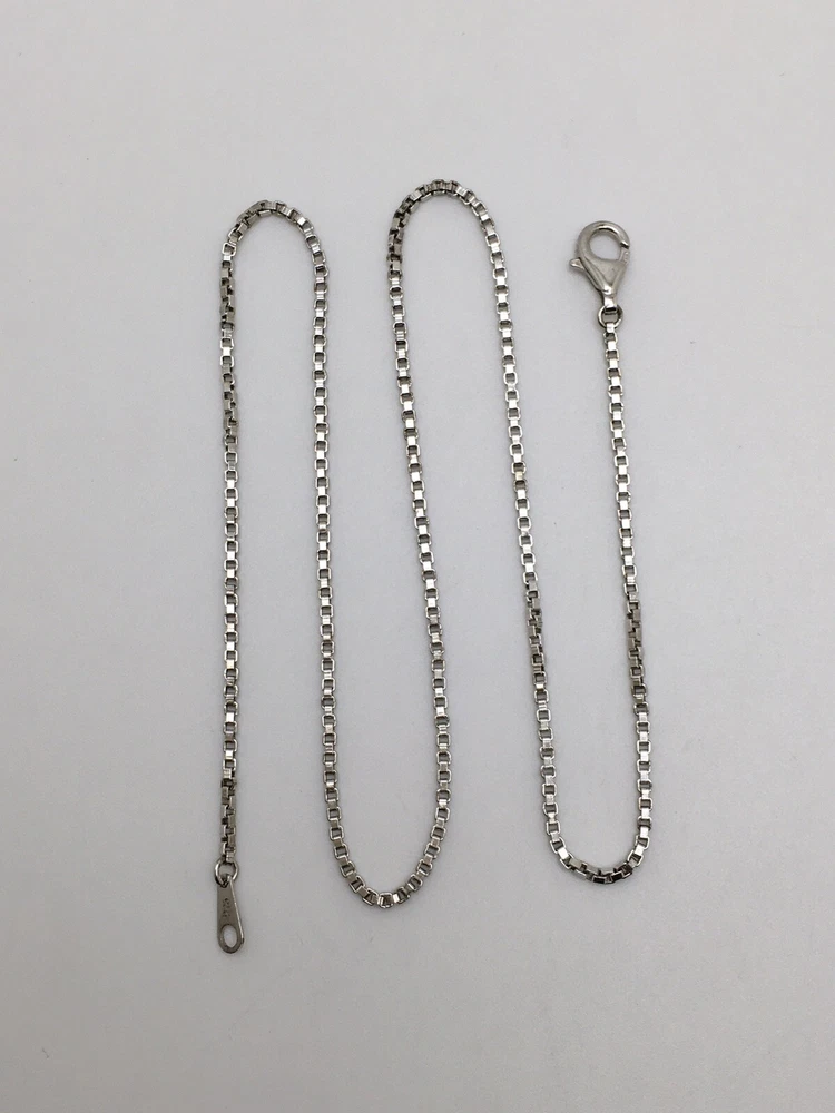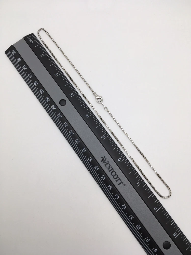 925 Sterling Silver Rhodium Plated Box Chain Necklace Lobster Clasp 16" #1185 Hand polished. No machine cleaning necessary. Measuring Tool not included. Combined Shipping! 1st item $4.59, each additional item is $1. Max shipping cost $10. Combine shipping for up to 7 days! We value YOU! Items are returnable and fully refundable! SilverSchark began as a hobby that grew into a business. We take old retired sterling silver jewelry and revitalize it to wearable condition. Utilizing an ultrasonic machine with sterling silver solution most items are restored to their original beauty. Occasionally scratches are buffed out and some minor repairs are made to bring these tired pieces back to life. Diamonds are always tested. If a piece is not stamped or is suspected of not being sterling silver, the item is acid tested for confirmation. Tests will always be listed in the description. We understand that patina is desired on vintage or antique items so some of the listings will not be cleaned and polished. The description of each listing will tell its tale of restoration. Combined shipping is always welcome! Just ask for an invoice if your cart doesn't look correct. Max shipping cost is $10 per shipment regardless of number of items!