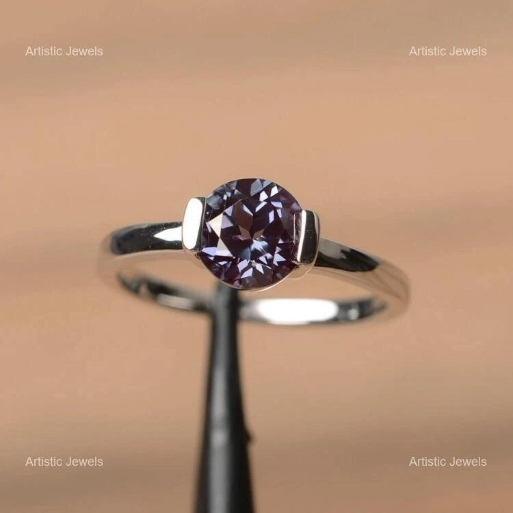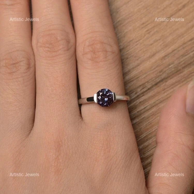 925 Sterling Silver Alexandrite Gemstone Wife Stackable Ring Jewelry US All Size